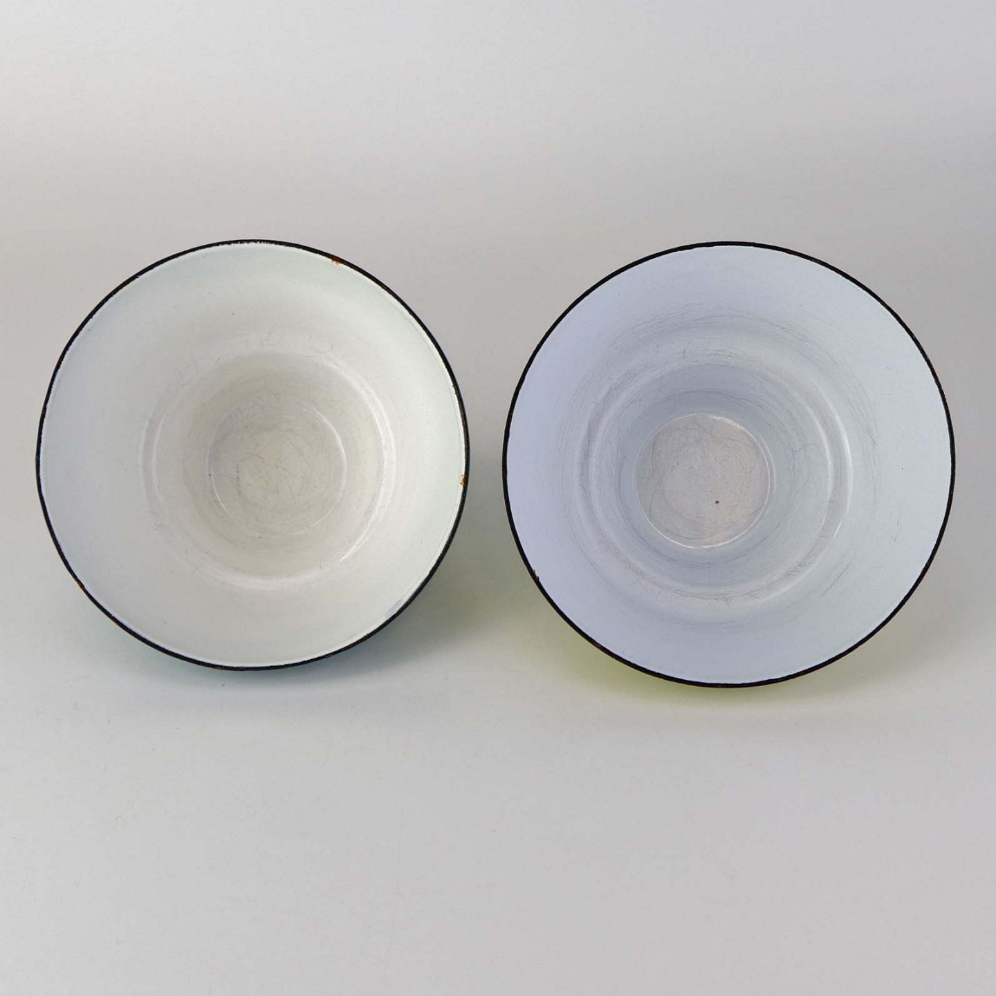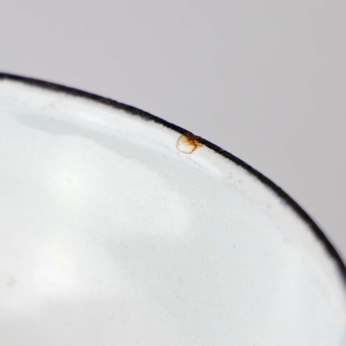 Fremstår med mindre afslag i emaljen på skål kanten samt indvendige brugsspor.