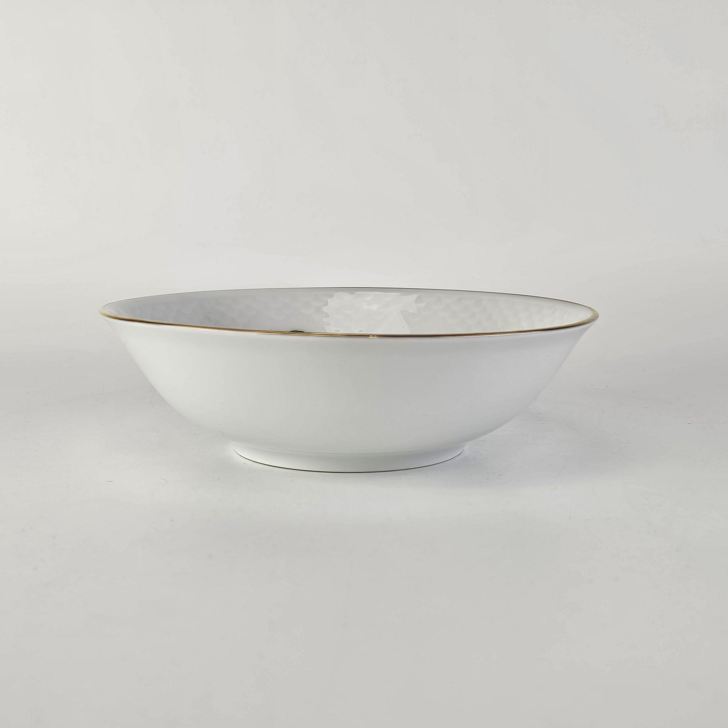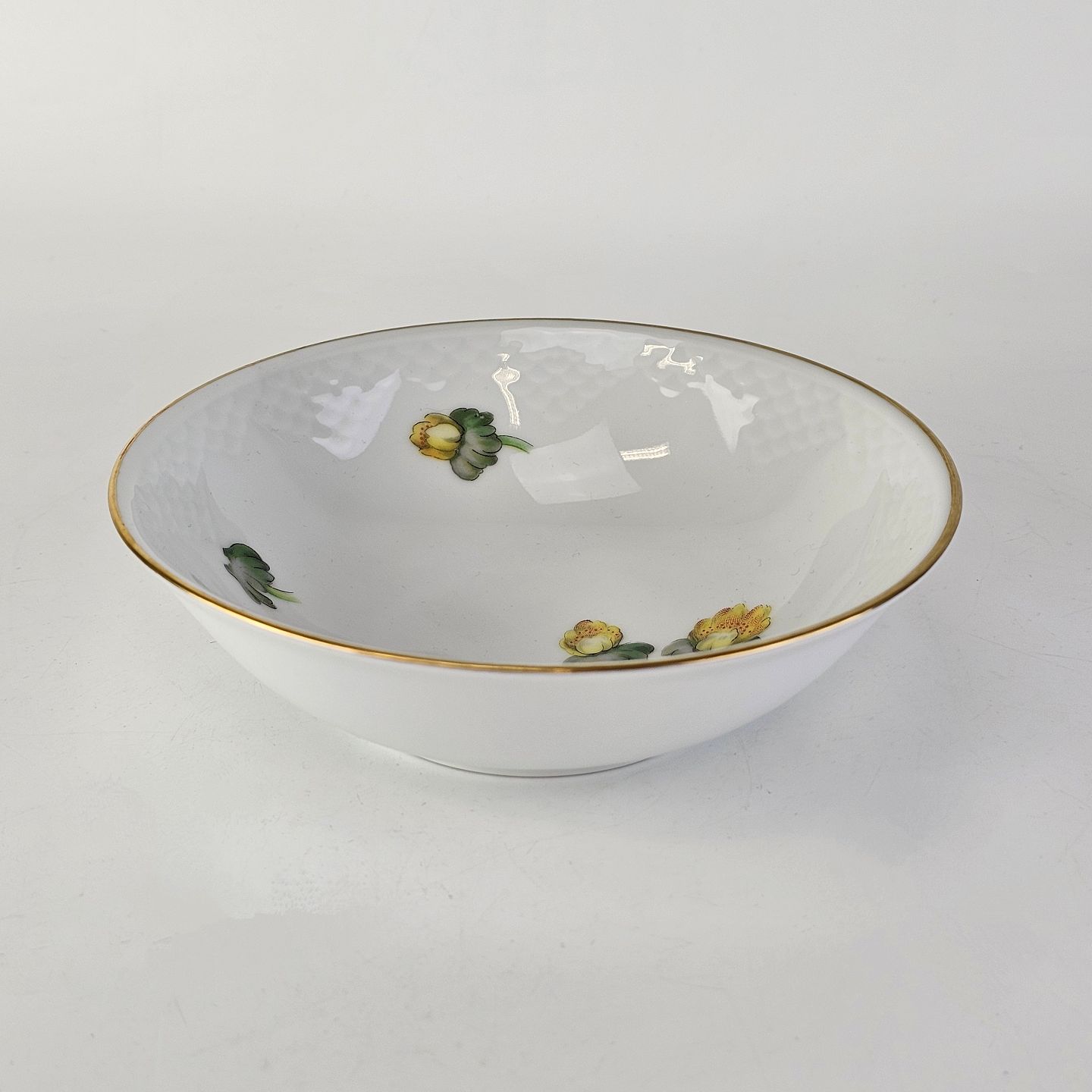 Hvidt porcelæn med motiv af gule erantis blomster og guldkant