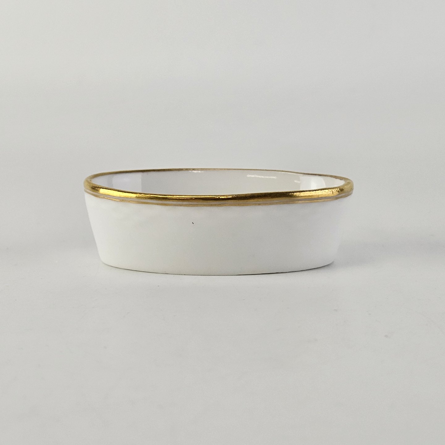 Service i lyst porcelæn med skælform og gylden kant