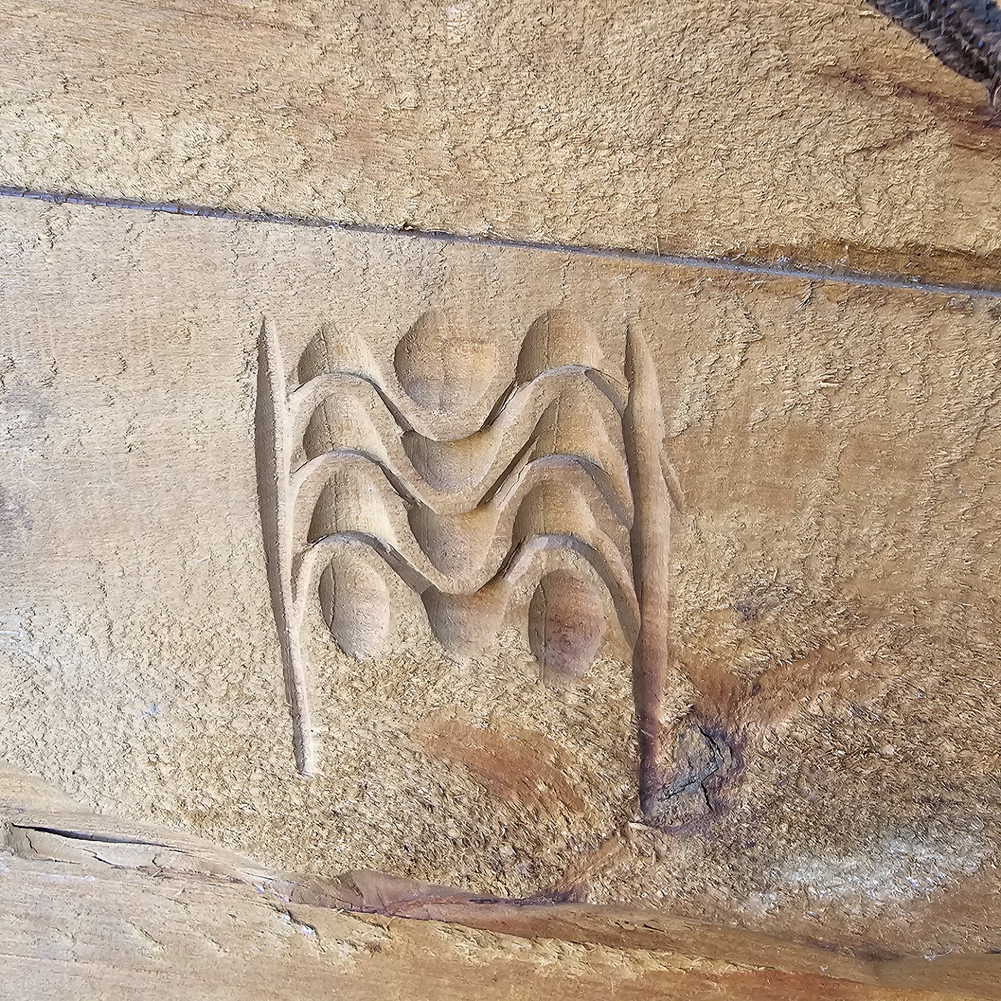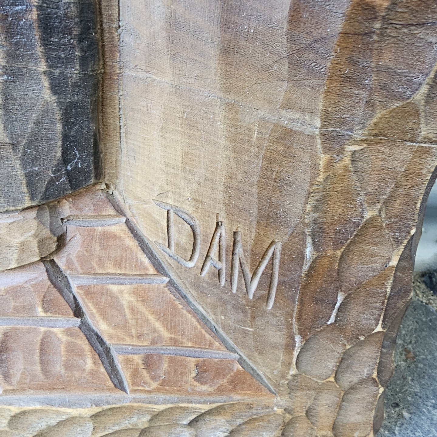 Trærelief med motiv af mand og kvinde ved et bord fra 1952