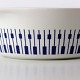 Stellet er fremstillet i ildfast glat porcelæn dekoreret med mørkeblå tangenter på hvid baggrund.