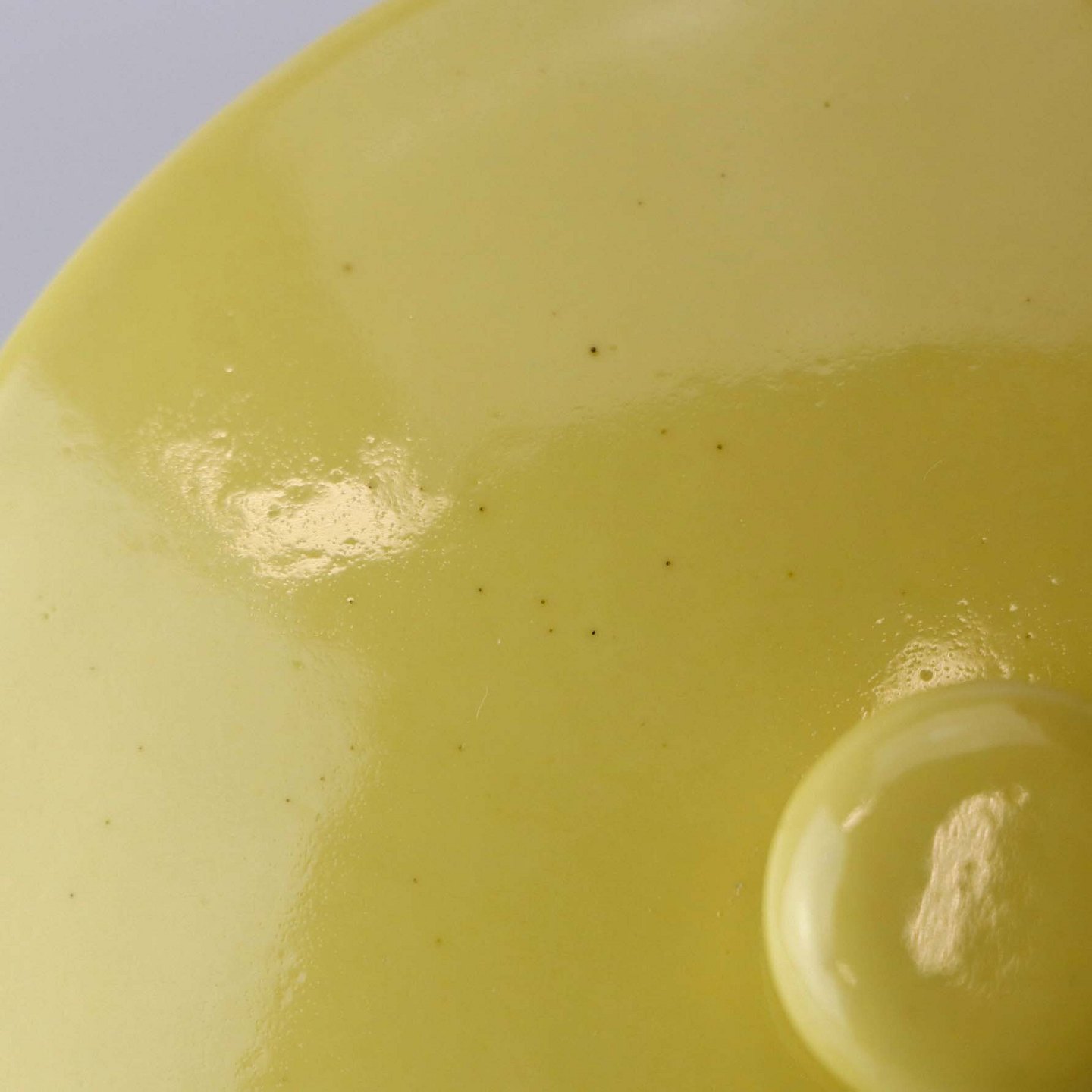 Smørkande med låg og hank i porcelæn fra stellet Gul glasurfarvet.