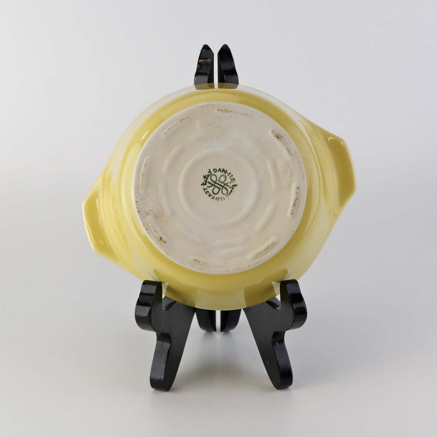 Stellet er fremstillet i ildfast glat porcelæn dekoreret med gul glaseret yderside og hvid glaseret inderside.