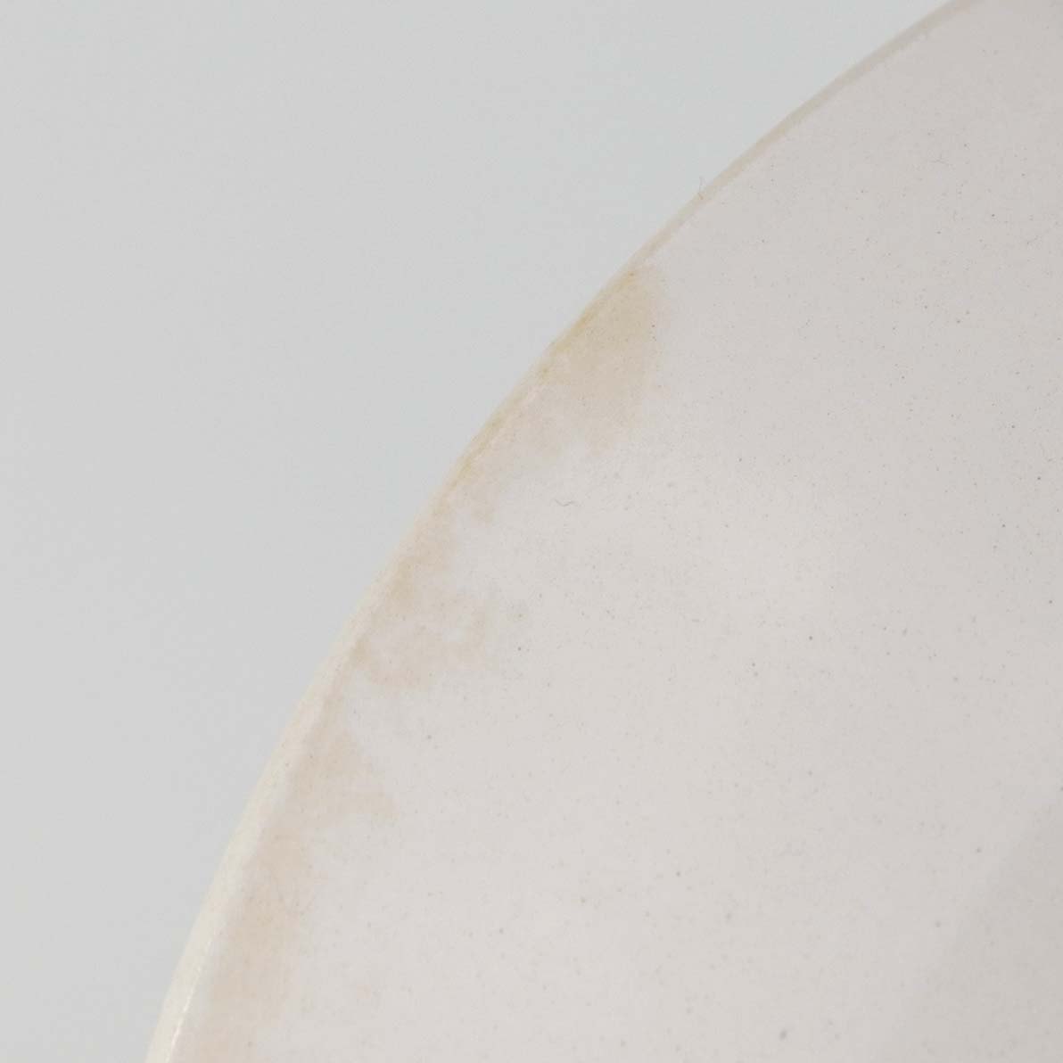 Fremstår med område på bagsiden med lettere brunet kant samt ujævnhed i fajancen på frontsidens top.