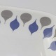 Stel produceret i perioden 1961-69 fremstillet i glat hvidt porcelæn dekoreret med blå og grå dråber.