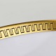 Stel i glat hvidt porcelæn dekoreret med sort streg i guldbort.