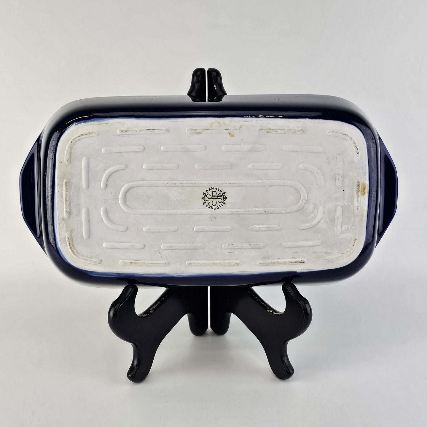Rektangulært fad i porcelæn fra stellet Blå Glasurfarvet