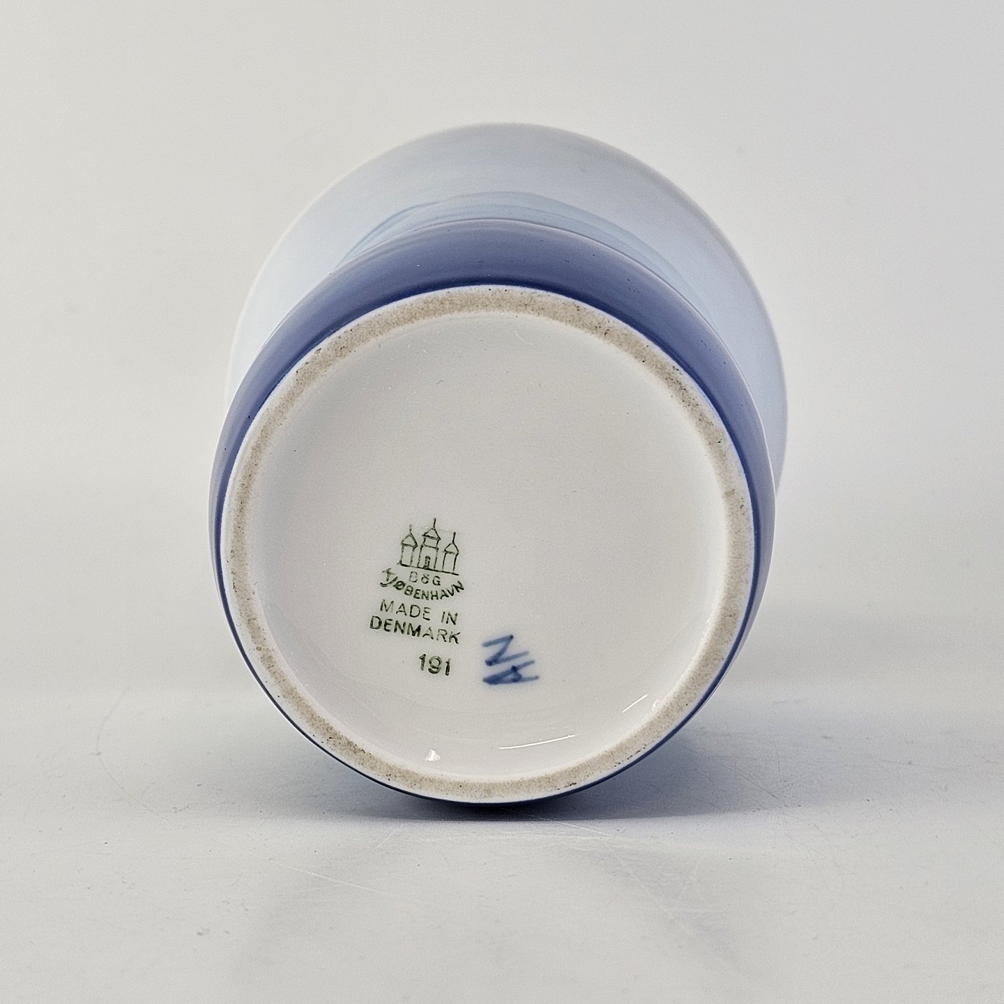 Julerose er hvidt porcelæn med gradueret blå farver, dekoreret med et motiv af en hvid julerose