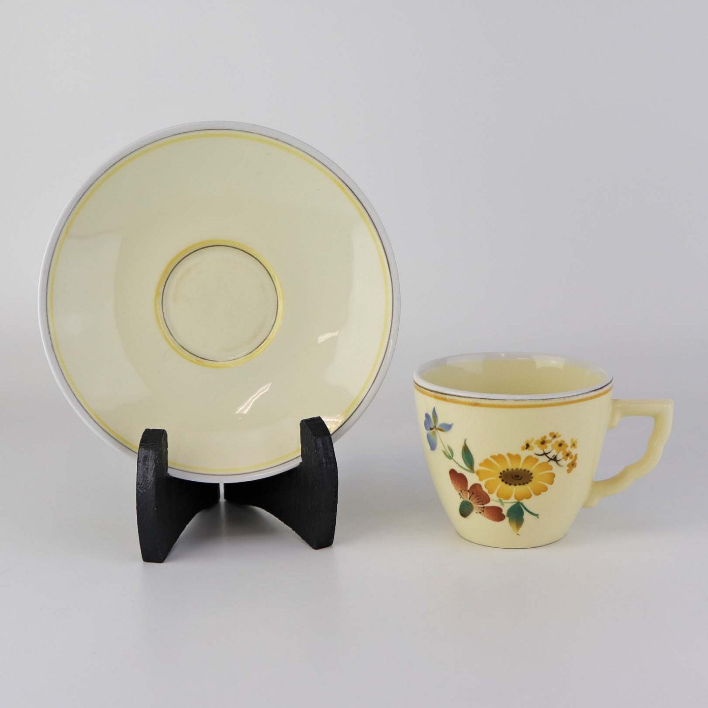 Kaffekop med underkop i fajance fra stellet Elisabeth.