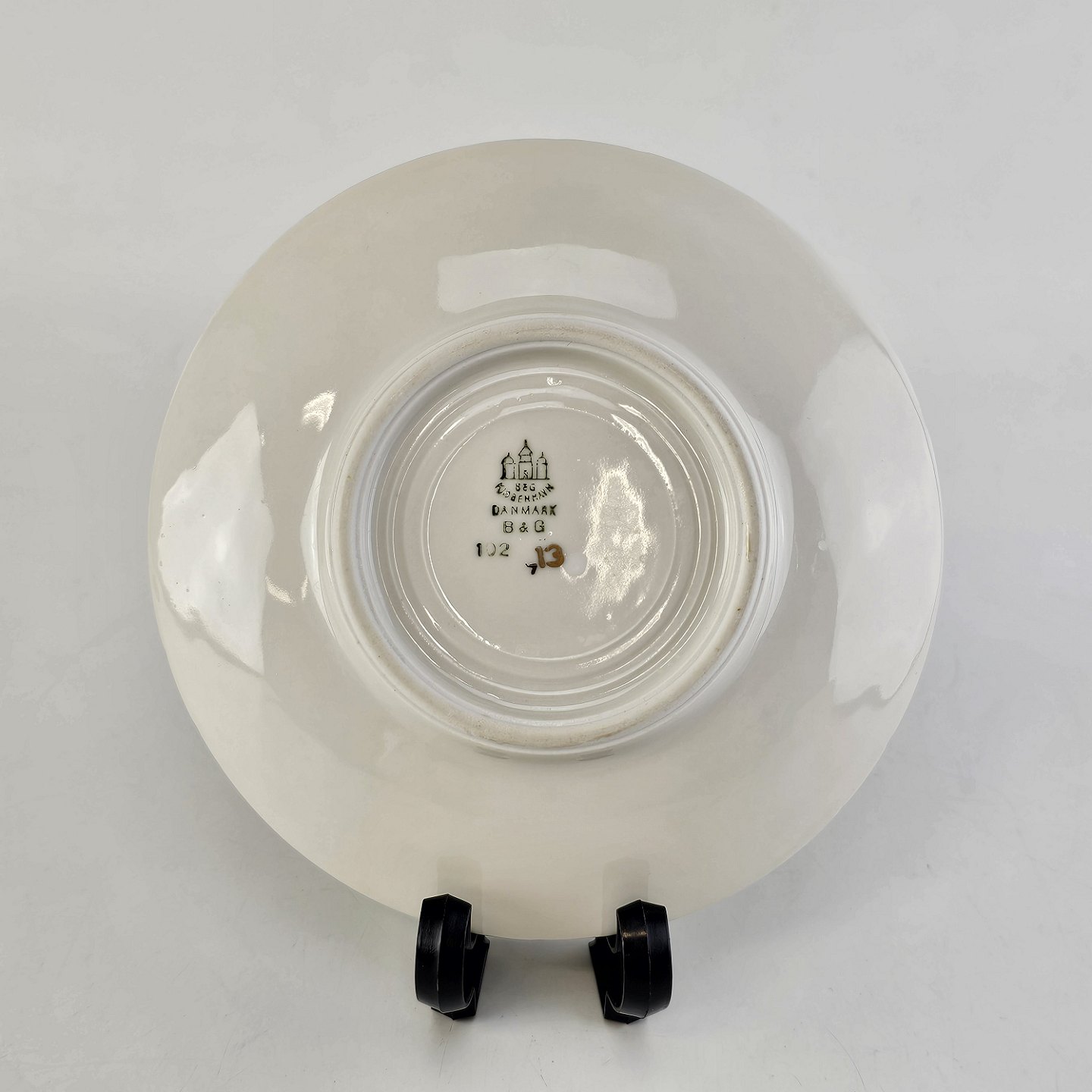 Kaktus er cremefarvet porcelæn i skælform, dekoreret med kaktusblomster og guldkant