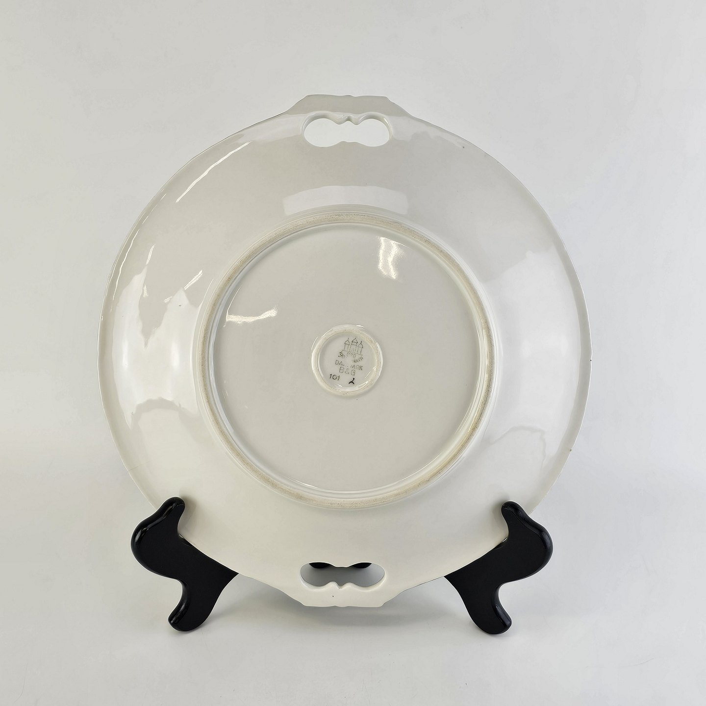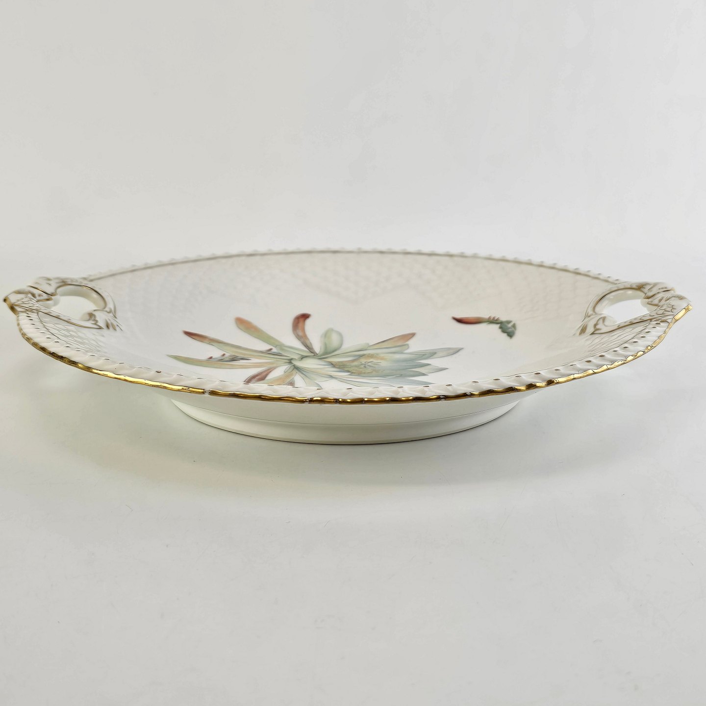 Rundt fad med hanke i porcelæn fra stellet Kaktus