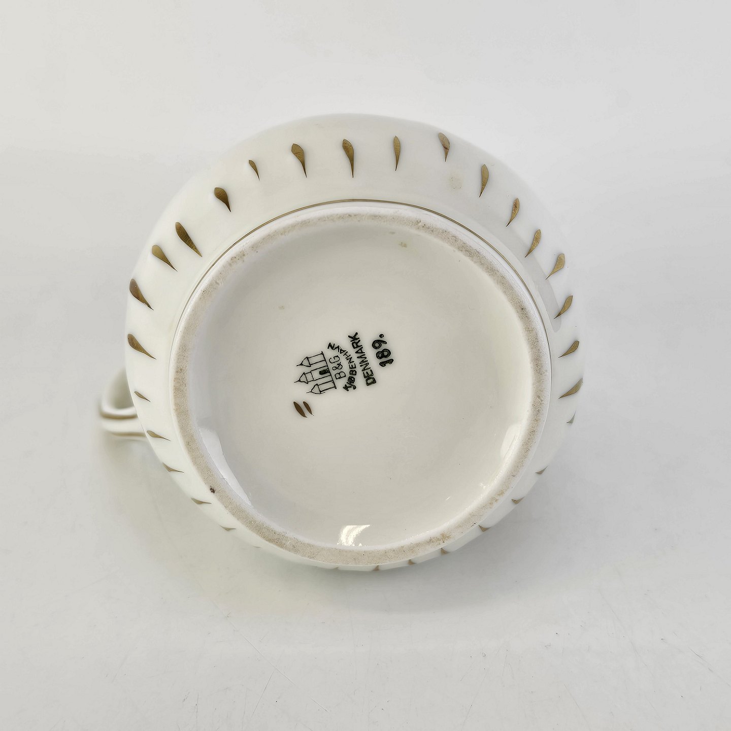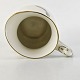 Kaktus er cremefarvet porcelæn i skælform, dekoreret med kaktusblomster og guldkant