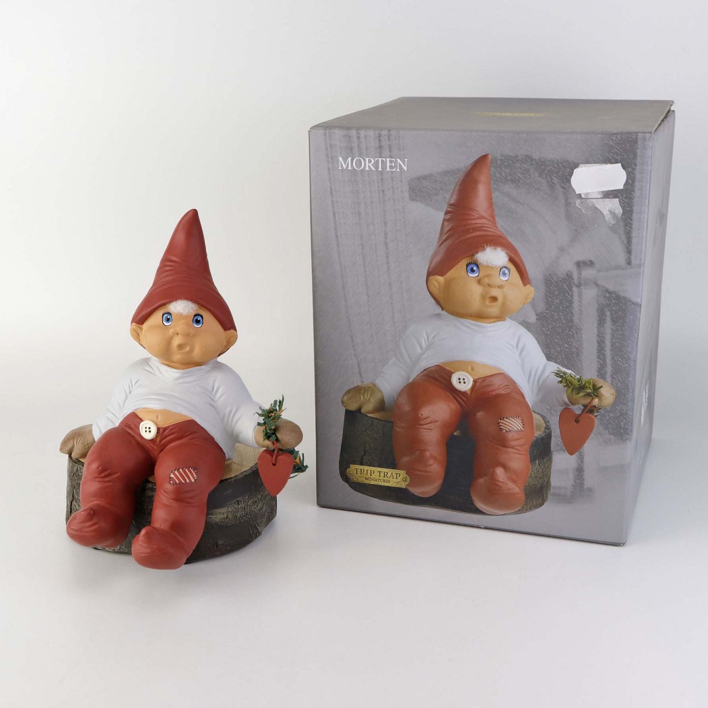 Figur med motiv af den madglade nisse Morten fra serien Klarborg jul. Figuren kommer med original boks.