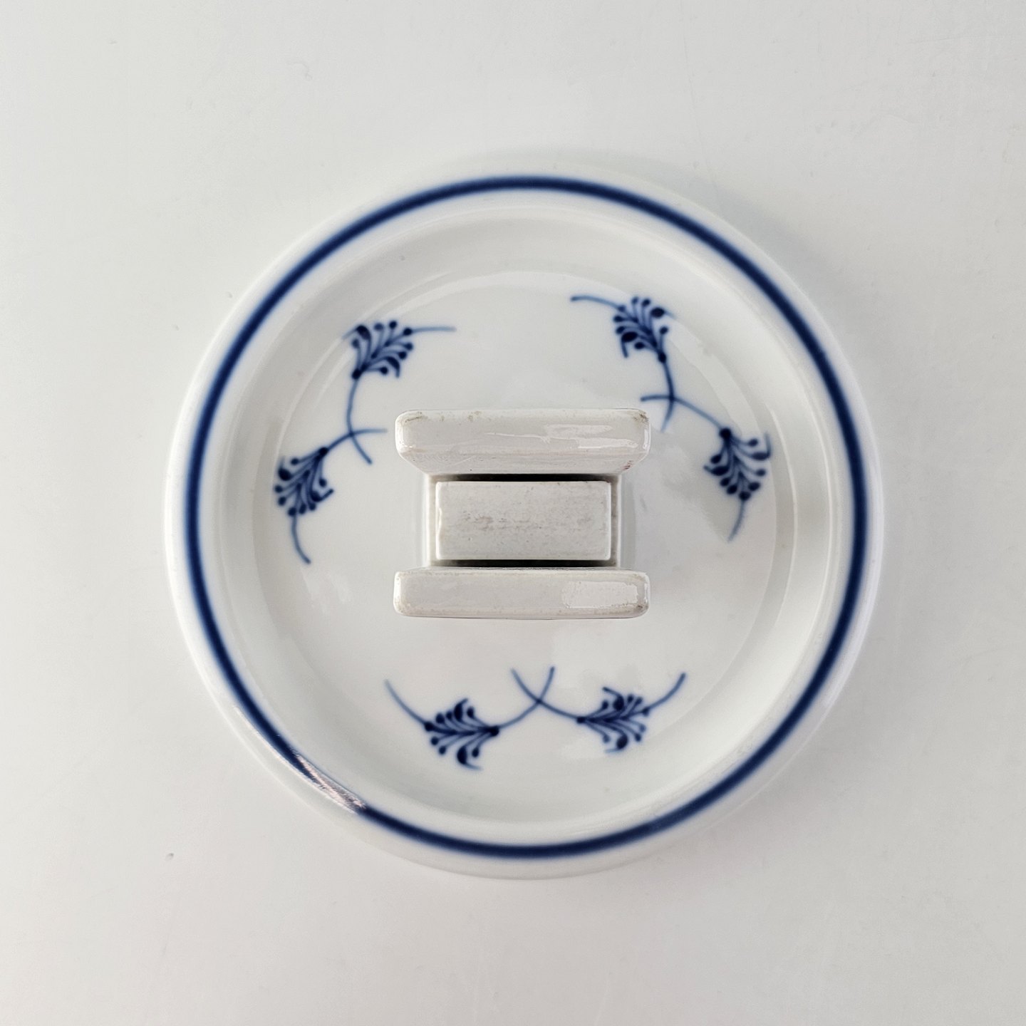 Tandstikkeholder i hotelporcelæn med motiv fra restaurant Kilden i Aalborg fra stellet Blåmalet