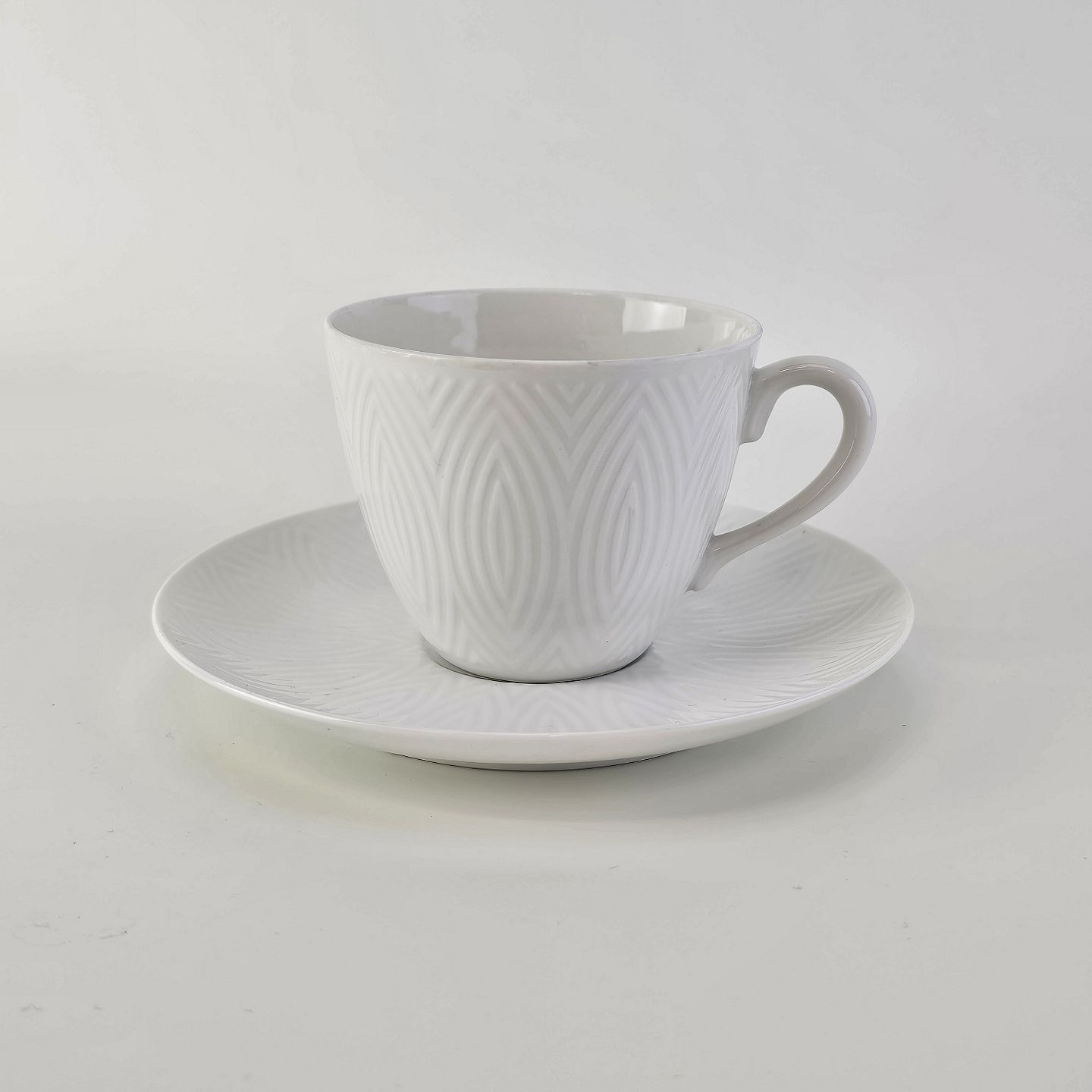 Kop med underkop fra stellet Salto i hvidt porcelæn