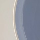 Service i lyseblå fajance dekoreret med tynd hvid kant.