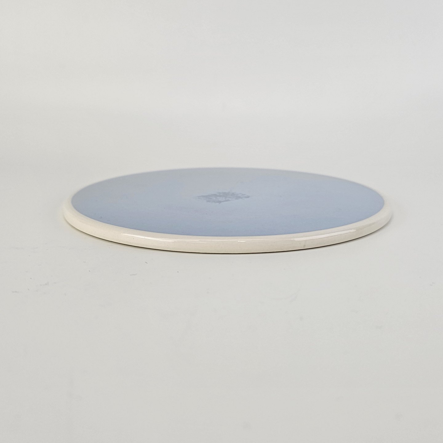 Service i lyseblå fajance dekoreret med hvid kant