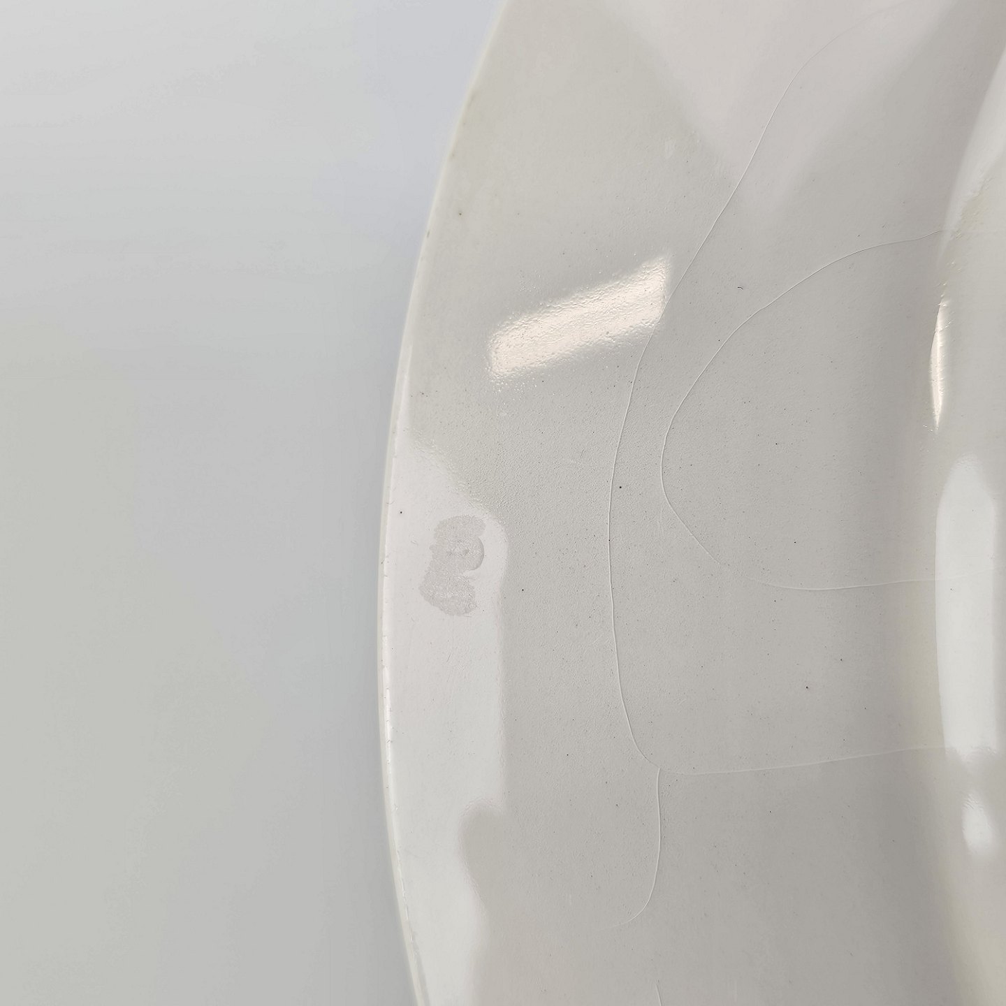 Fremstår med krakeleringer i glasuren og en fejl i glasuren på undersiden