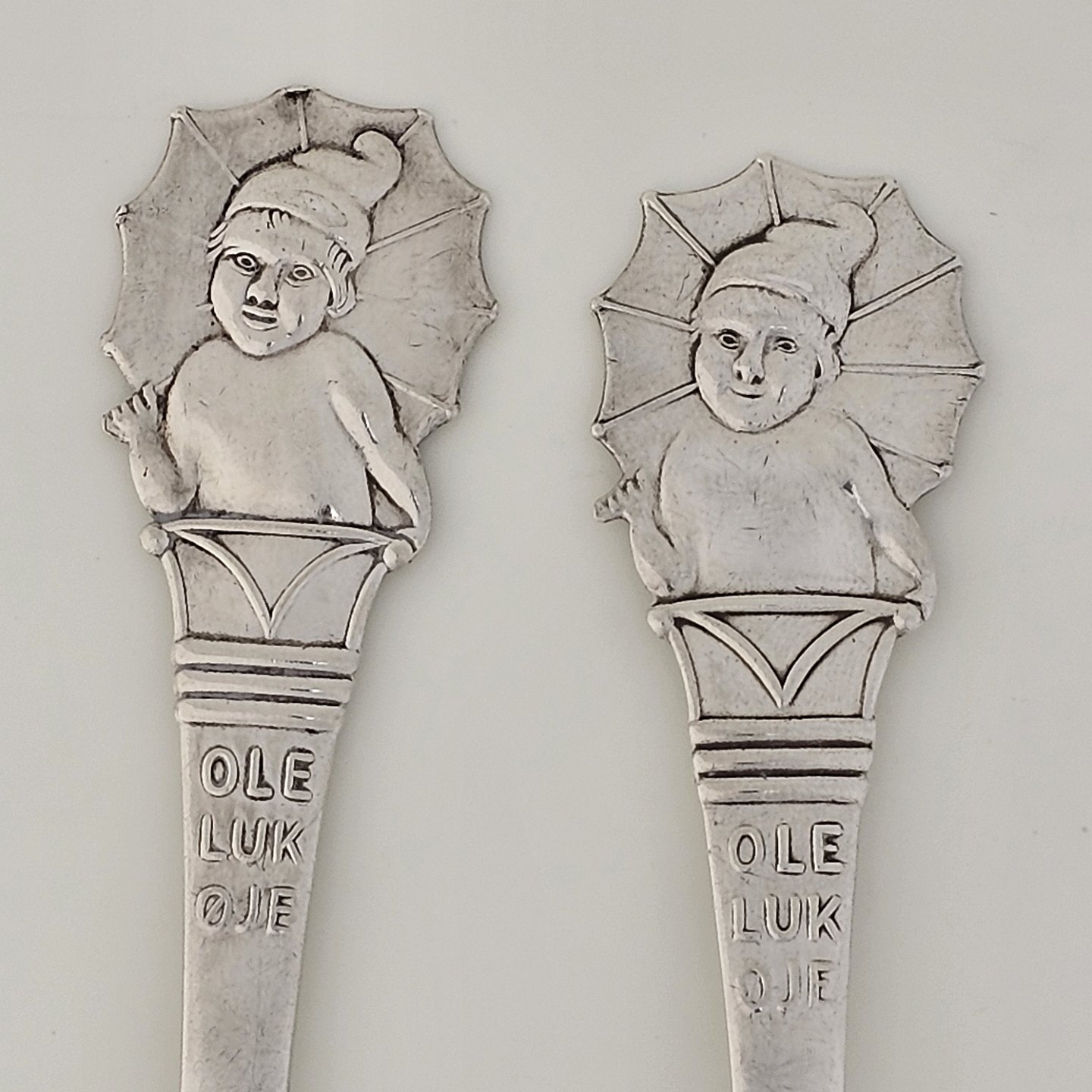 Gaffel og ske i tretårnet sølv med motiv af Ole Lukøje