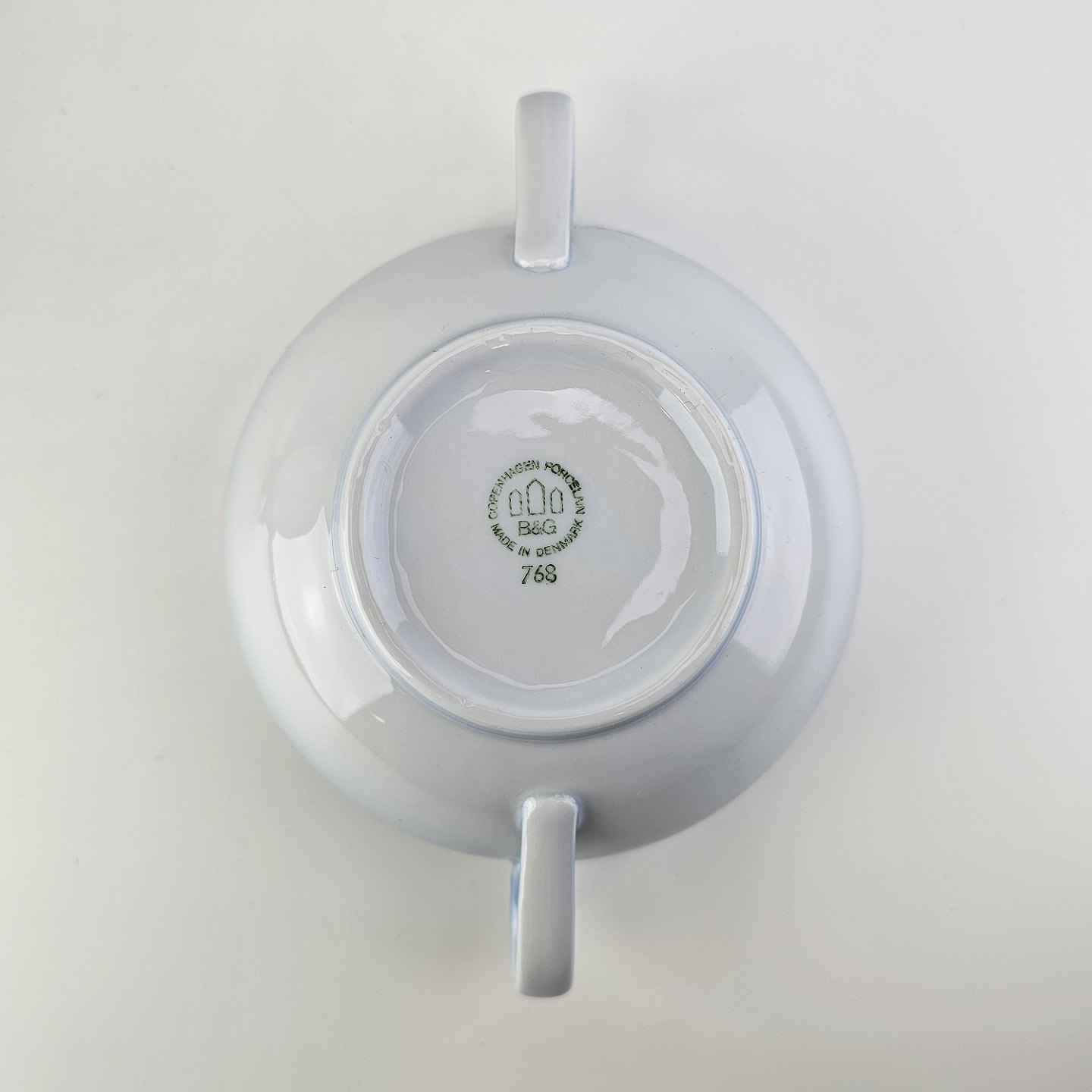 Blå tone er fremstillet af hotelporcelæn, glaseret hvidt med blå nuancer og dekoreret med skel lignende mønster.