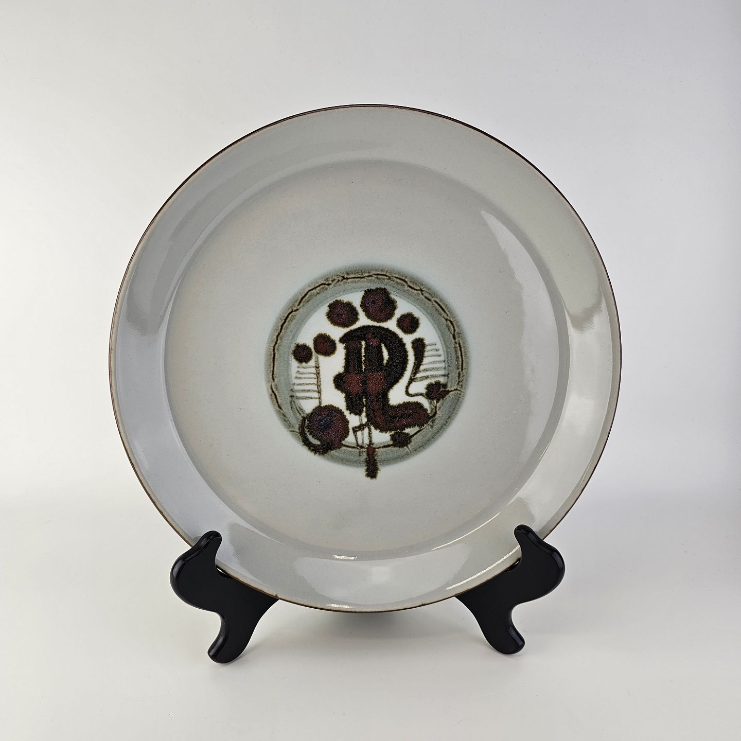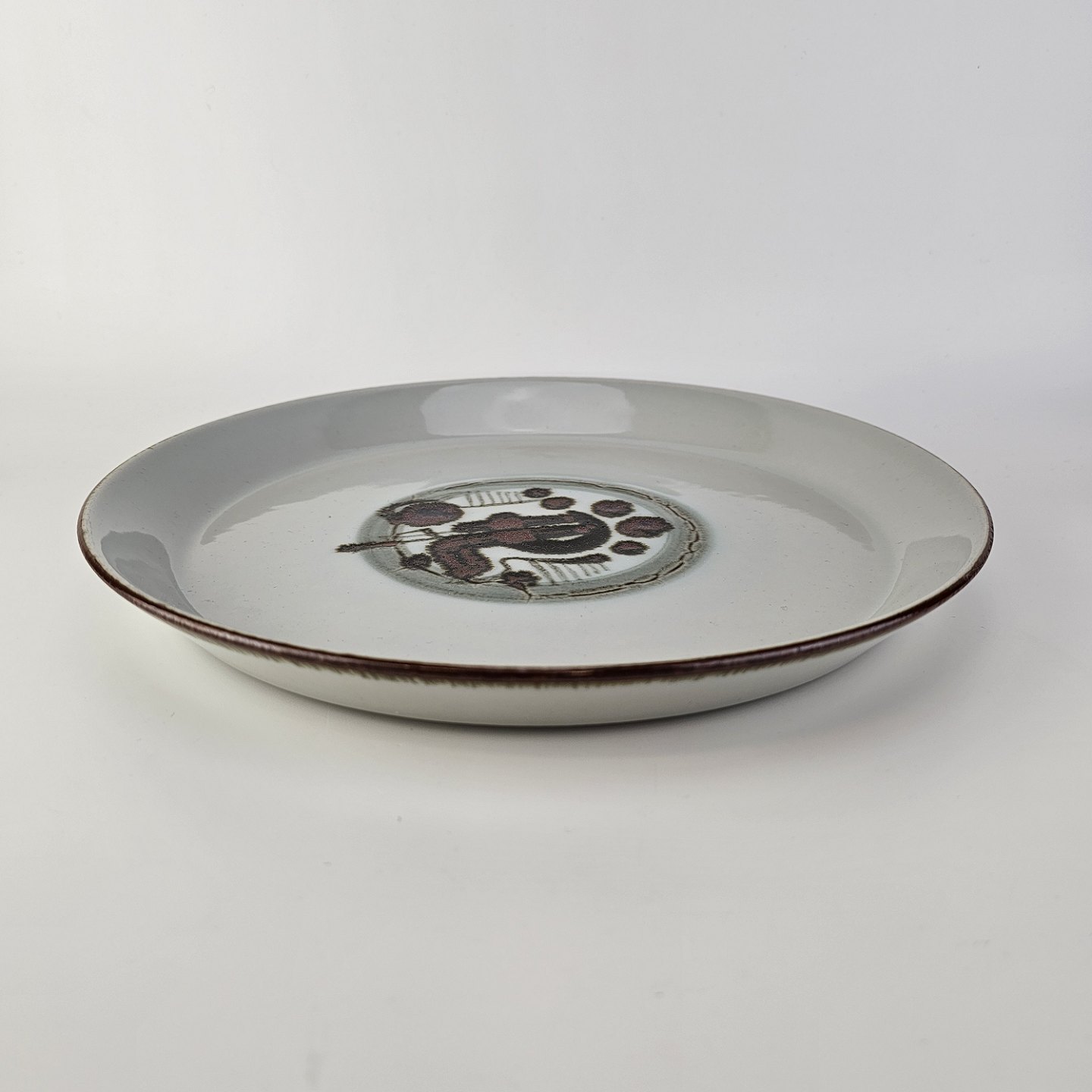 Rundt fad i stellet Thule, grålig tone med mønster midt for.