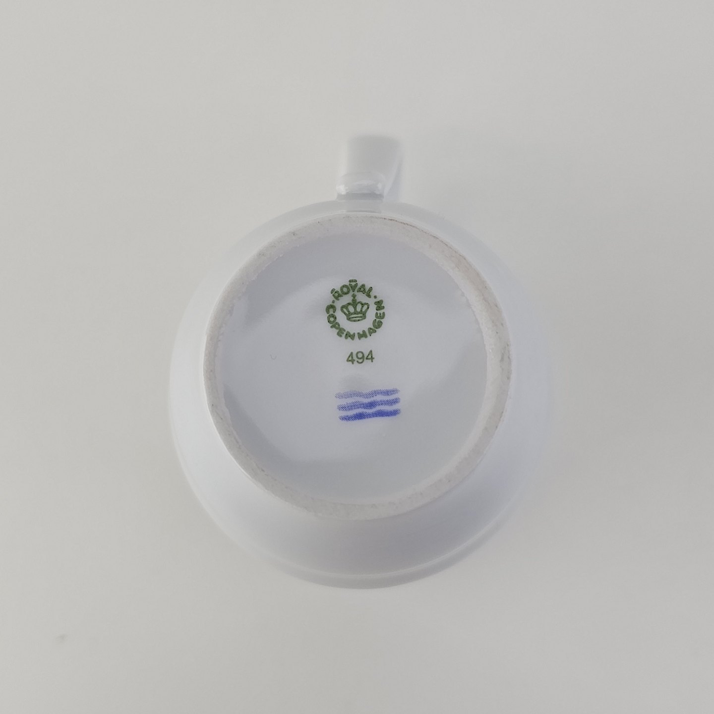 Høj kop med underkop i hvidt kongeligt porcelæn