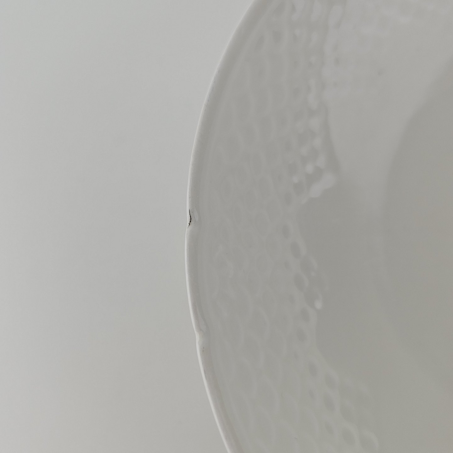 Elegance er cremefarvet glaseret porcelæn med skæl mønster