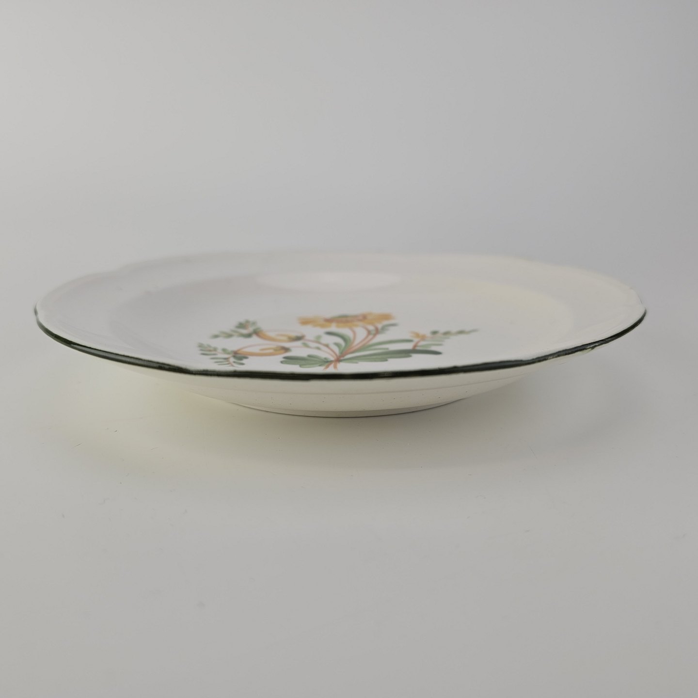 Dyb kagetallerken i fajance fra stellet Maj fremstillet i perioden 1941-1966.
