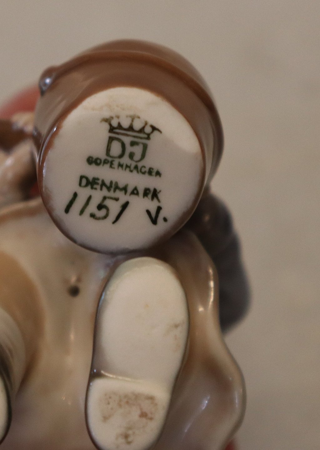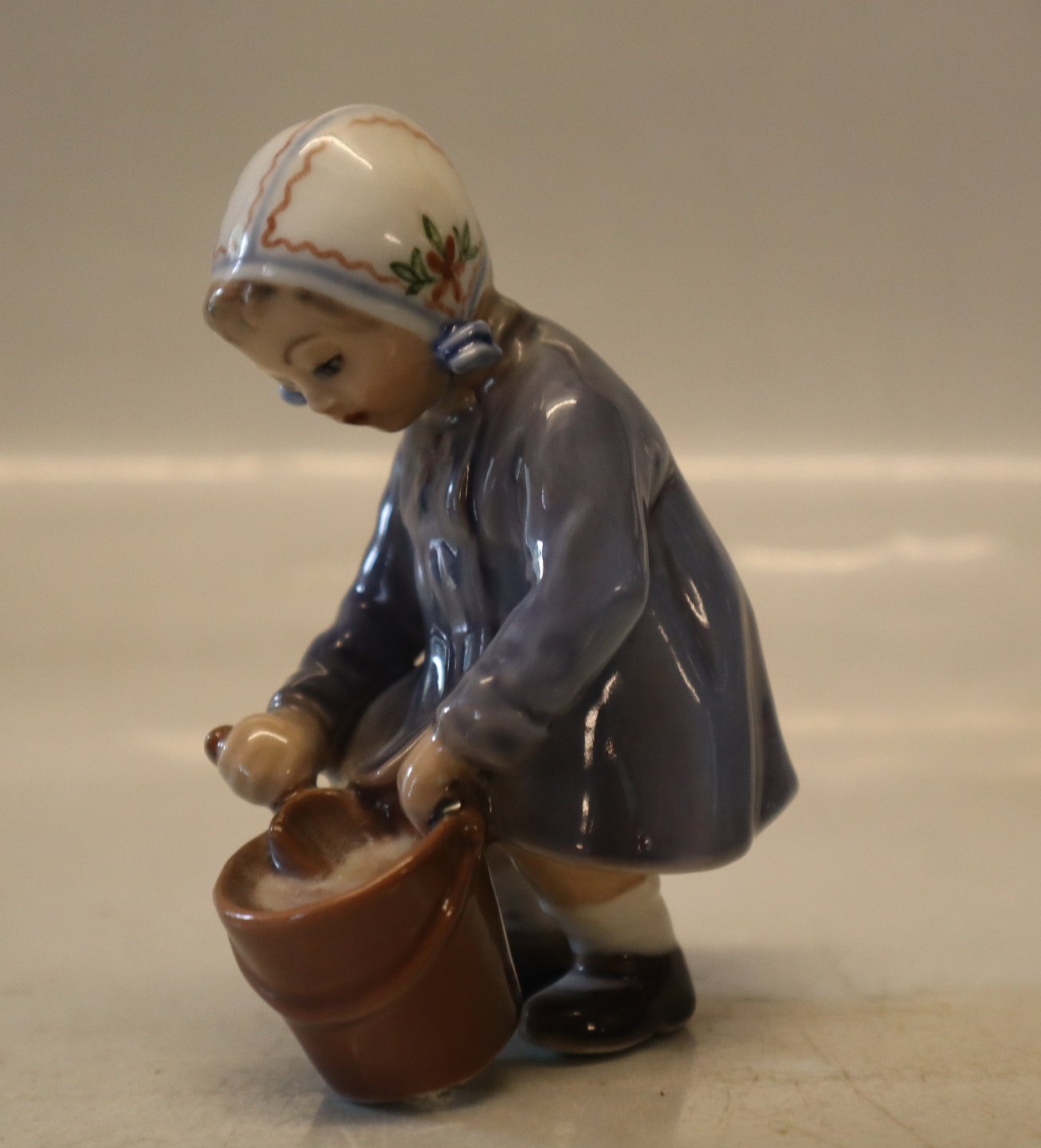 : Dahl Jensen 1151 Pige med spand 9,5 cm. Mærket med kongelig krone og DJ Copenhagen i hel og fin stand.