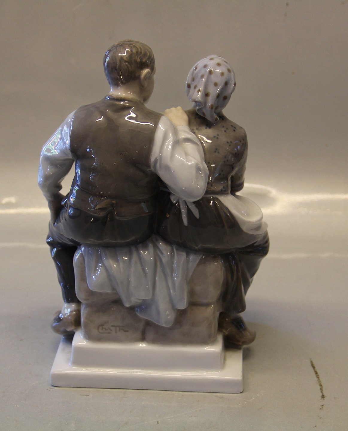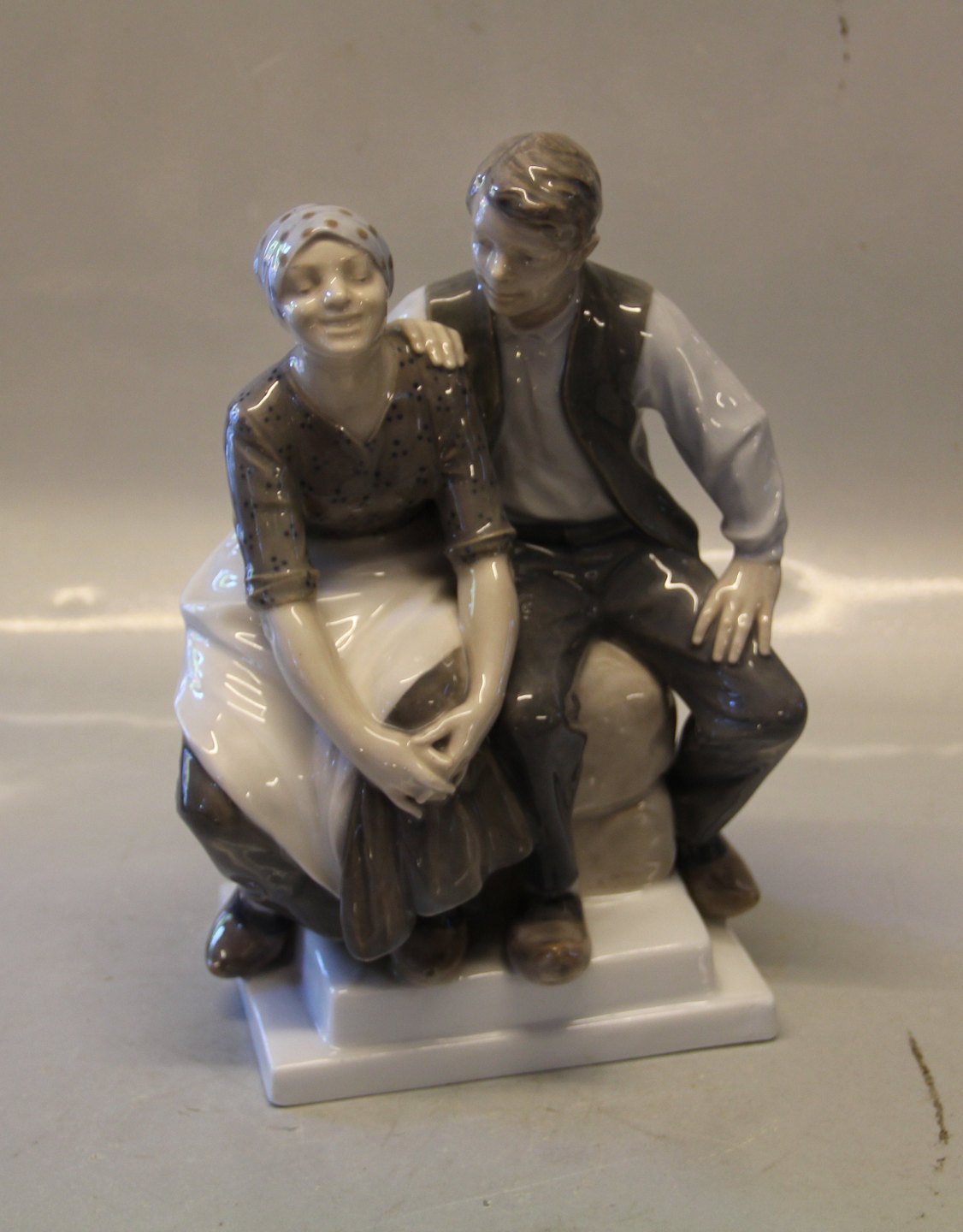 Beskrivelse: Kgl. 2168 Kgl. Mand og kvinde på bænk Christian Thomsen 1921 24 cm fra Royal Copenhagen I hel og fin stand