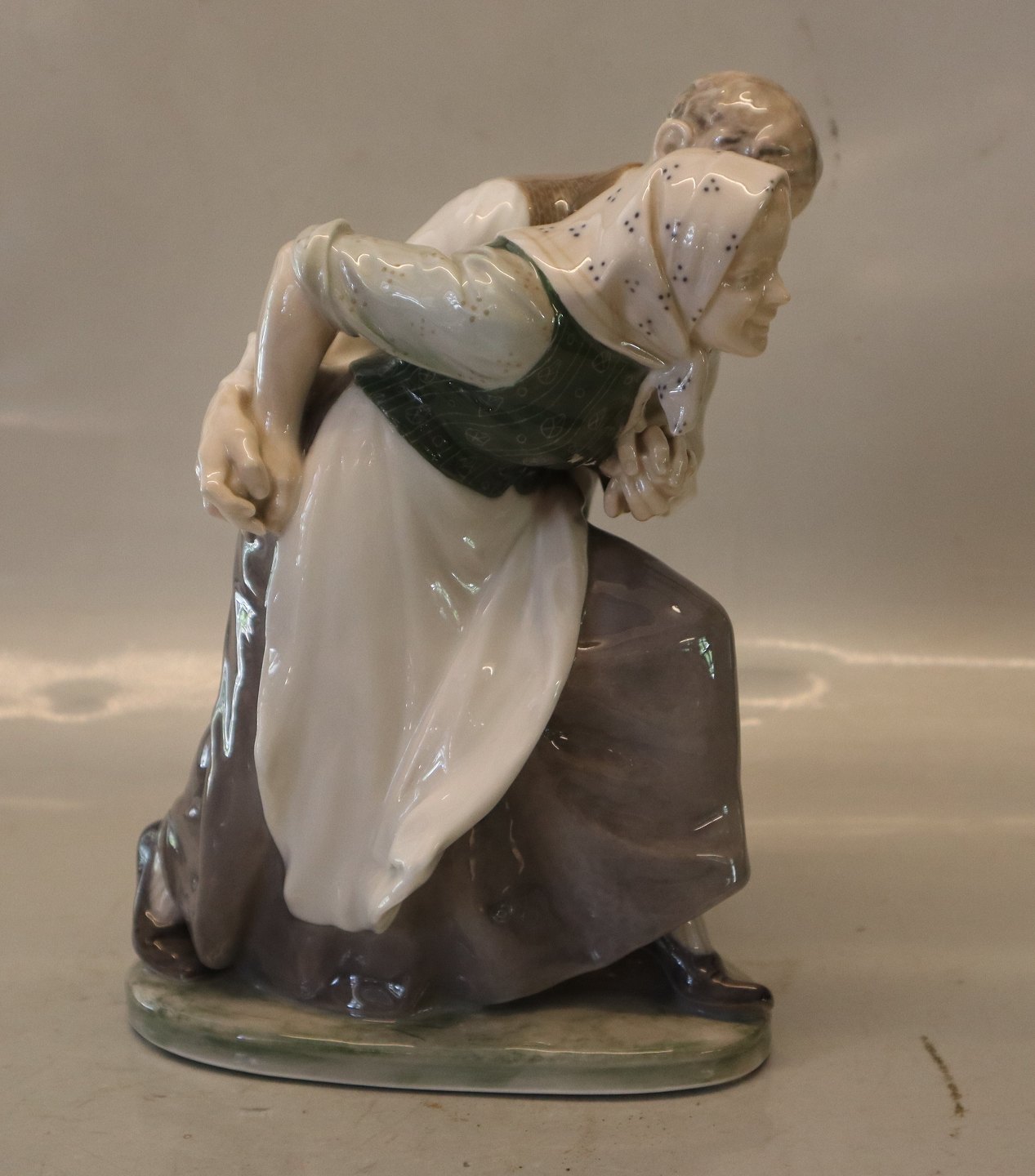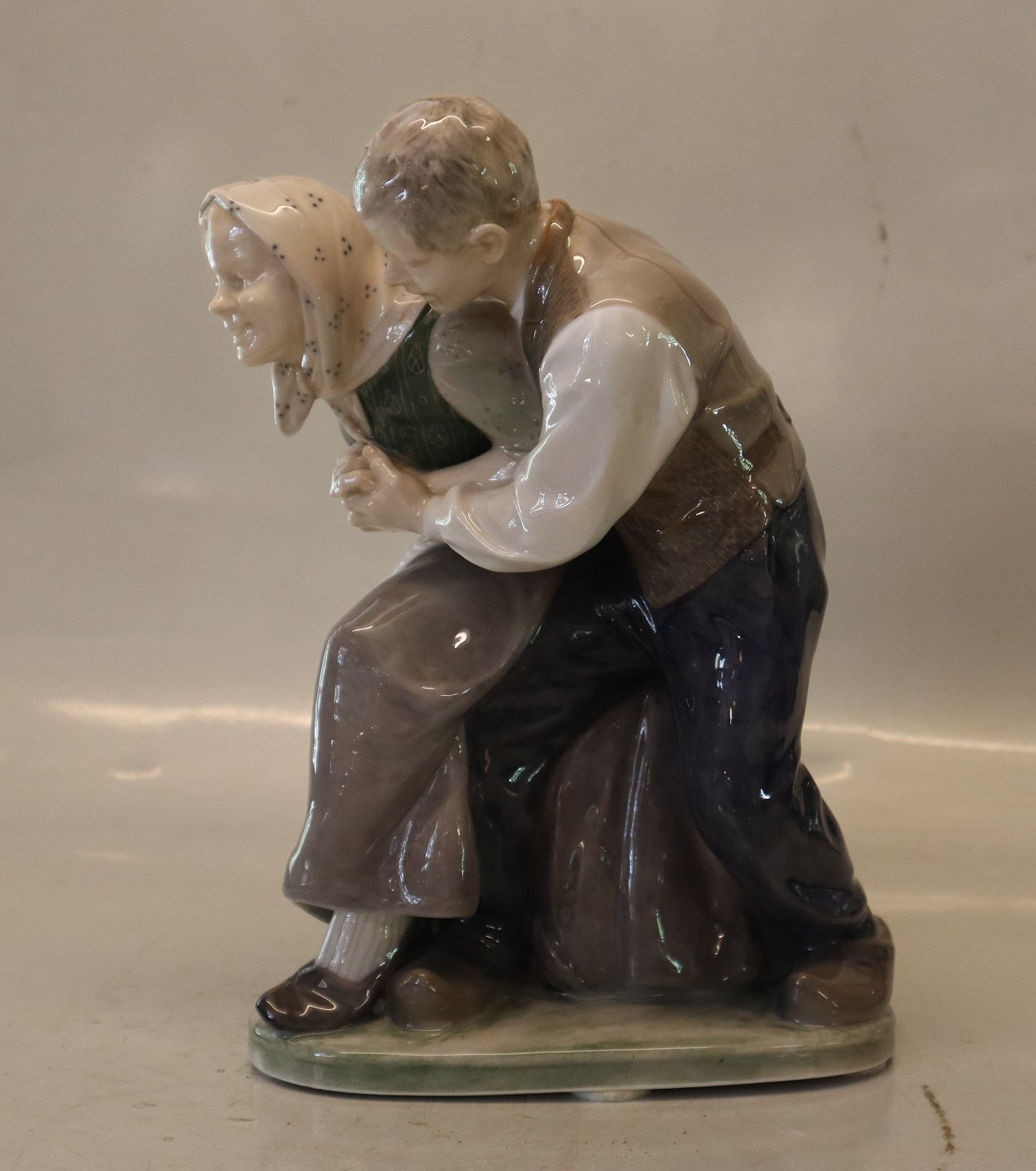 Beskrivelse: Kgl. figur fra Royal Copenhagen 1326 Kgl. Dansende bondepar. Chr. Thomsen 1920 24 x 18 cm I hel og fin stand 1. sortering før 1923