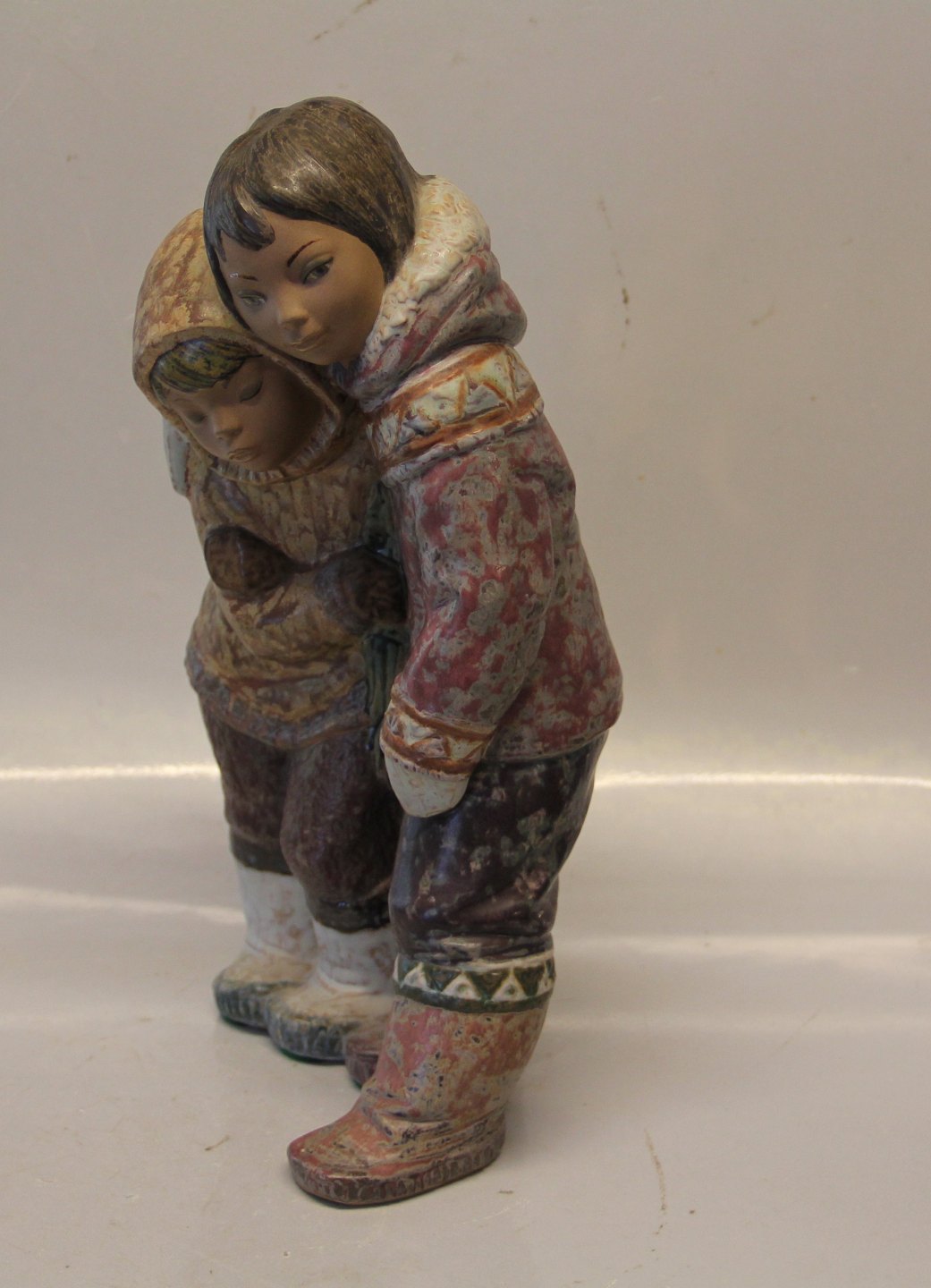 Beskrivelse: Lladro Kgl. Spansk Porcelæn to inuitter Grønlandske børn - Eskimodragter 32 cm I hel og fin stand Made in Spain