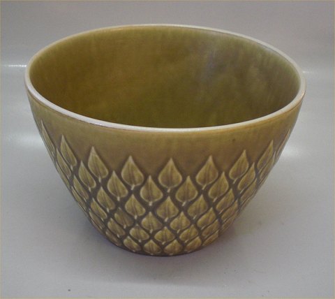 Description: B&G Relief Nissen 313 Salad bowl 12,5 x 19 cm Kronjyden Stoneware tableware. In nice and mint condition Bing & Groendahl, Leaf shaped pattern in relief on yellow stoneware by Quistgaard for Kronjyden, Nissen. Marked Kronjyden or Bing & Groendahl Copenhagen Stoneware