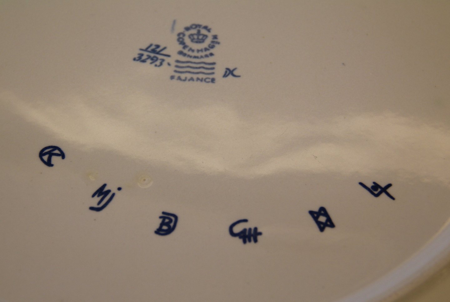 Beskrivelse: Royal Copenhagen Aluminia fajance 121b-3293 Frugtfad, Tenera 34 cm Signeret alle 6 Tenera piger