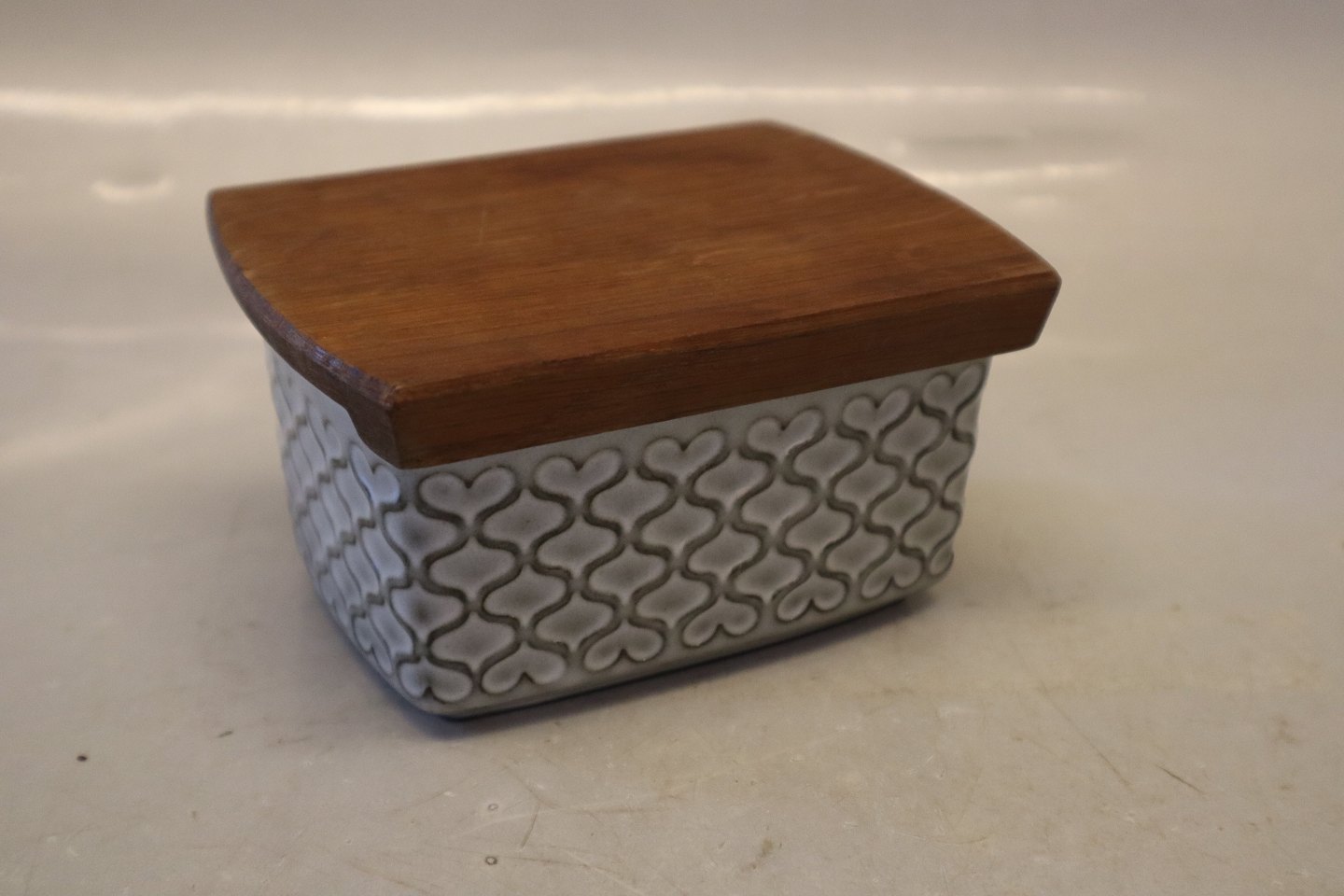 582 Smørskål med trælåg 8,5 x 13 x 10 cm Grå Cordial Quistgaard for B&G / Nissen Kronjyden Stoneware