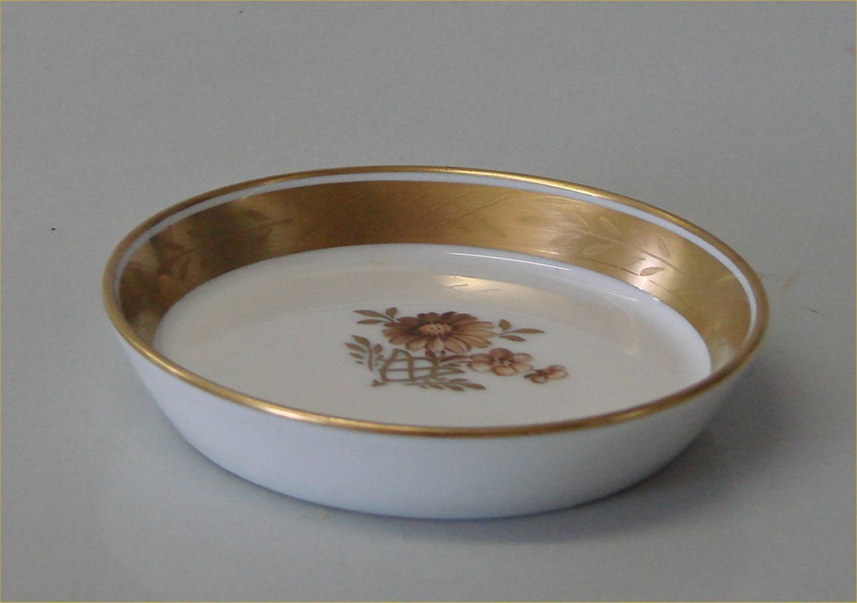 Kgl. 2422-595 Sættefad 9 cm Royal Copenhagen Guld dekoration på hvidt porcelæn 1927. I hel og fin brugt stand Golden Basket