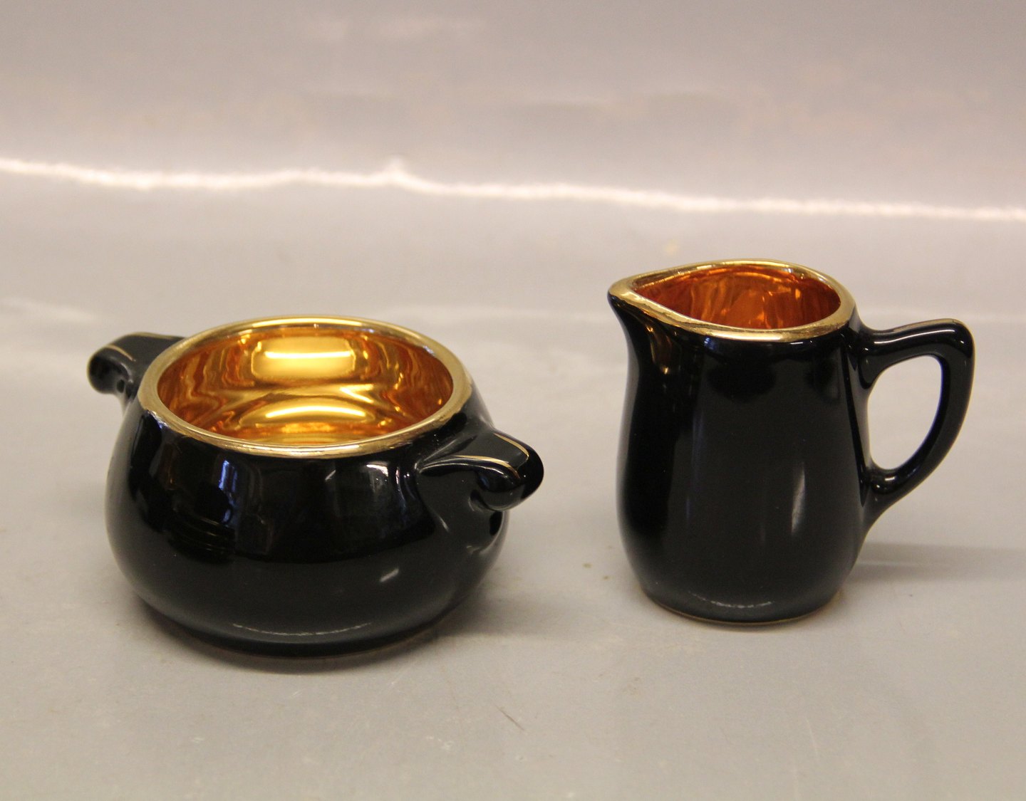 0 x 054 A Sort sukkerskål med guld 4.5 x 10 cm