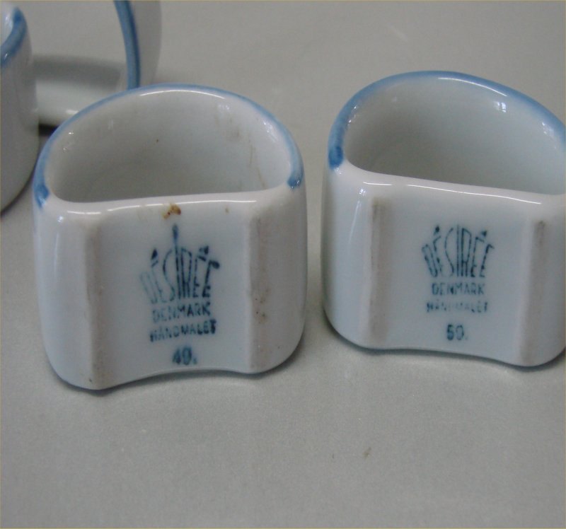 Servietringe 3,5 x 5 cm Mistelten. Desiree Stellets runde former er dækket med en silkeblød glasur og håndmalet med er lys almueblå farve lagt under glasuren.