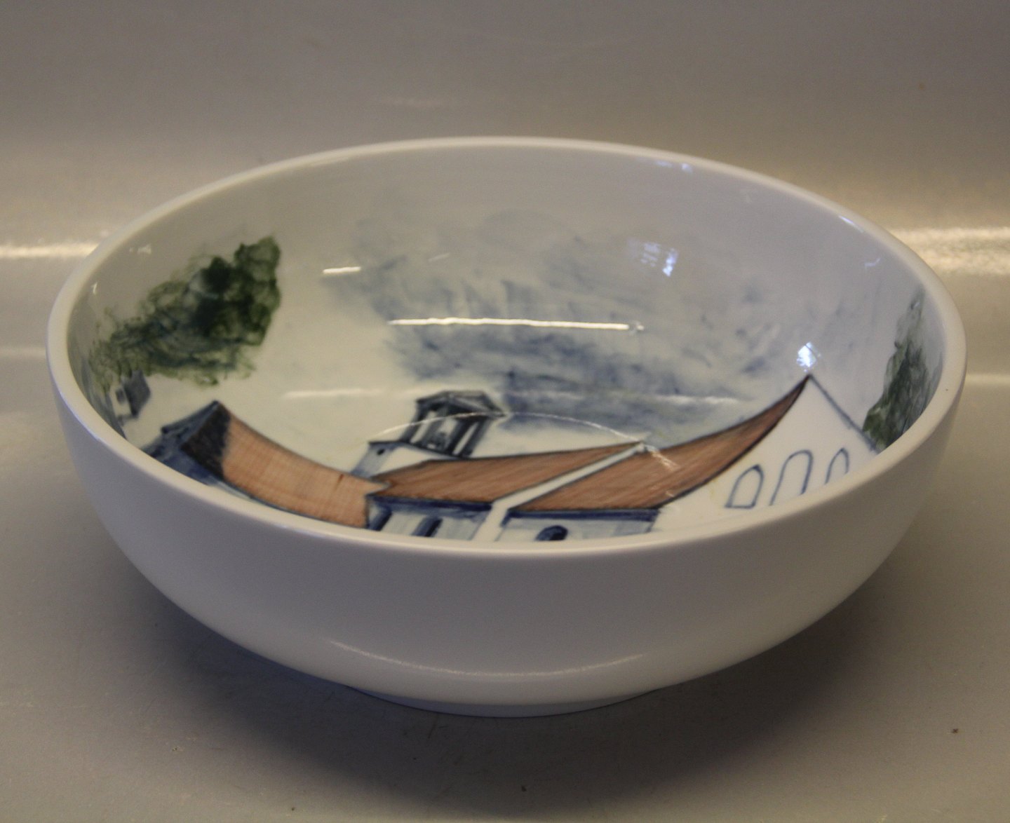 Beskrivelse: Kgl. Unika Skål 1957 Lars Swane Tranderup Kirke, Ærø LS E. III 9.5 x 27.5 cm fra Royal Copenhagen I hel og fin stand