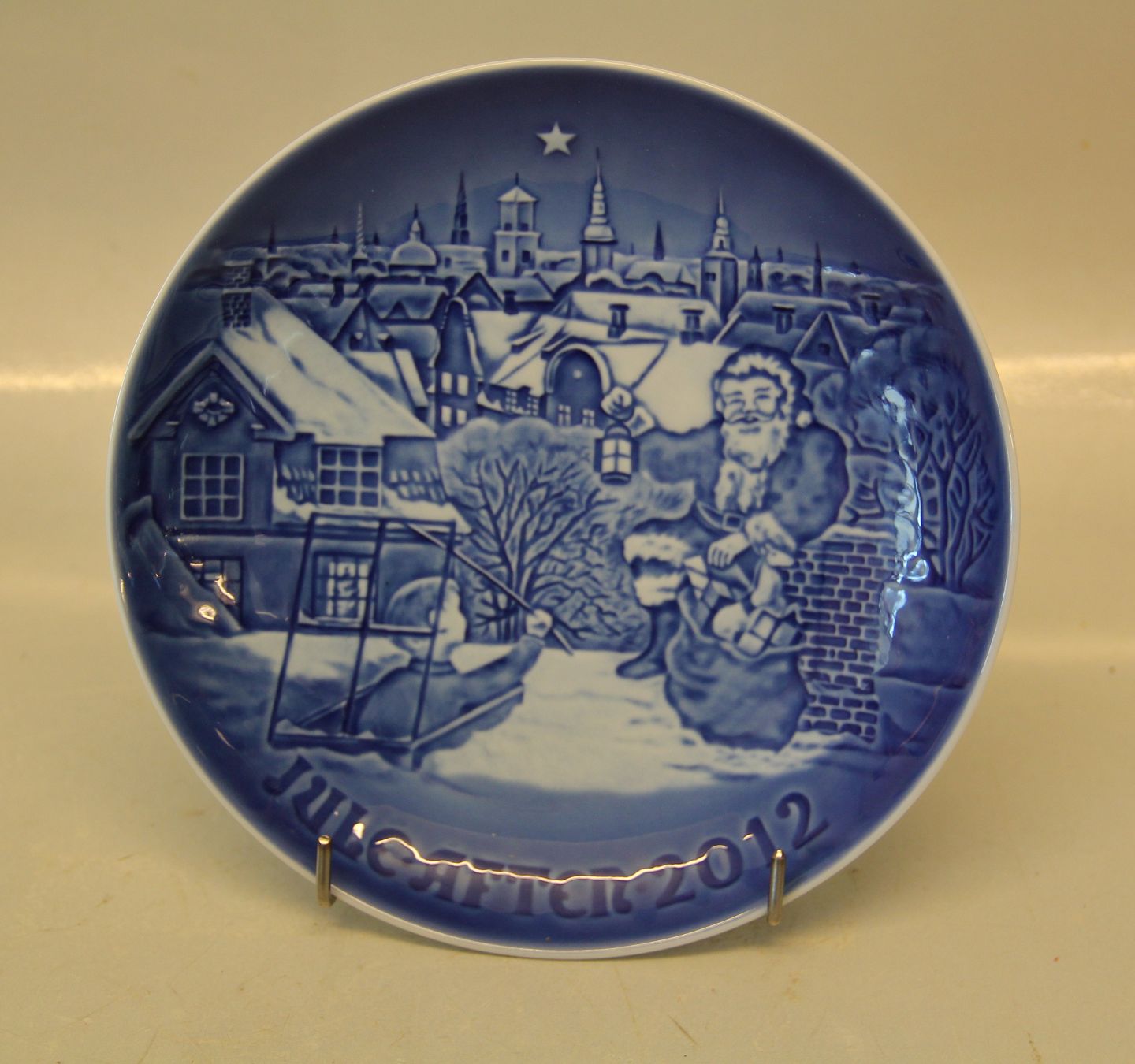 Beskrivelse: Bing & Grøndahl Juleplatte 2012 design Jørgen Nielsen: Julemanden på besøg. I fin og hel stand.