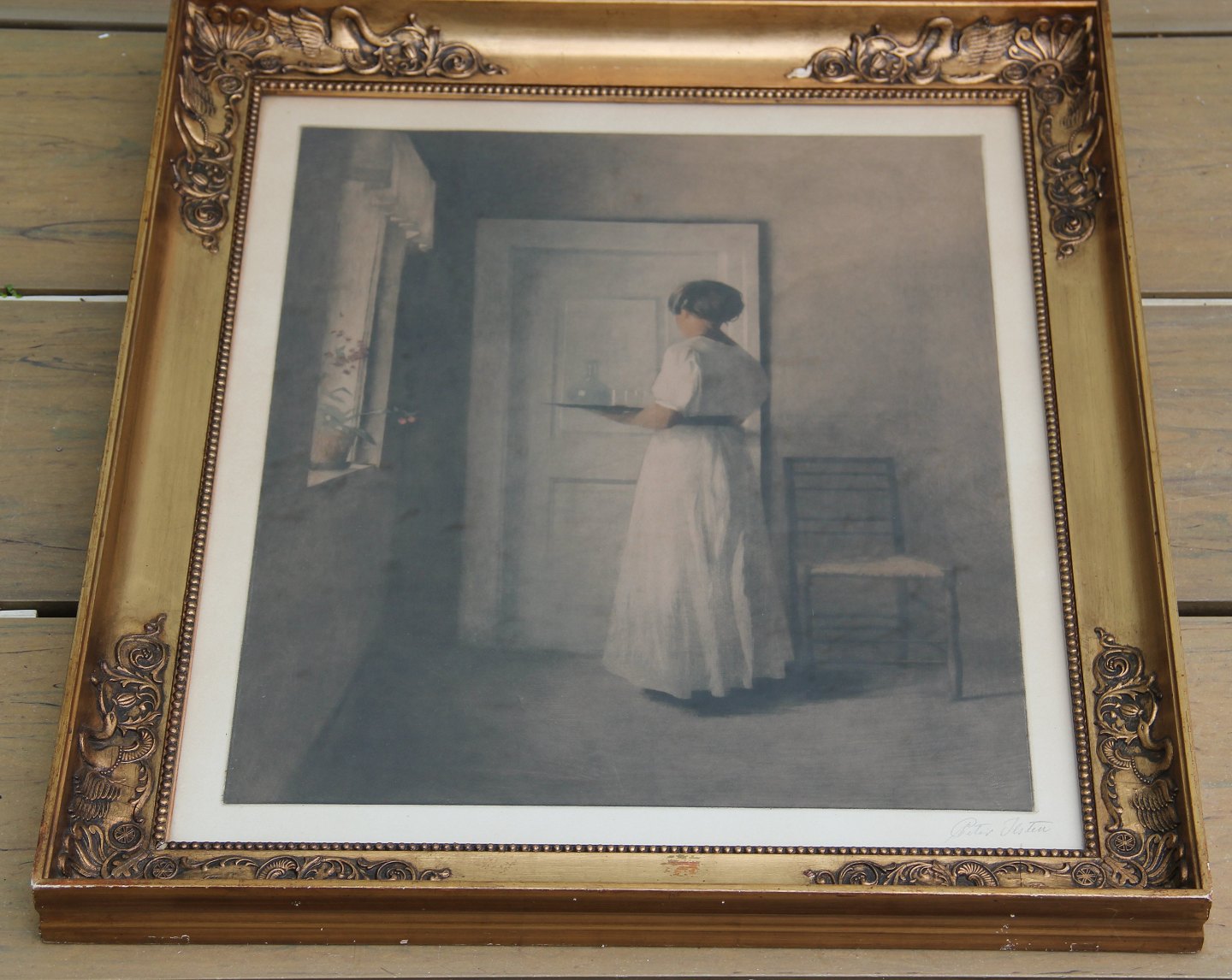 Opus 33. Ung Pige med en Bakke. Peter Ilsted Farvemezzotinte Gl. Guldramme 65 x 55 cm