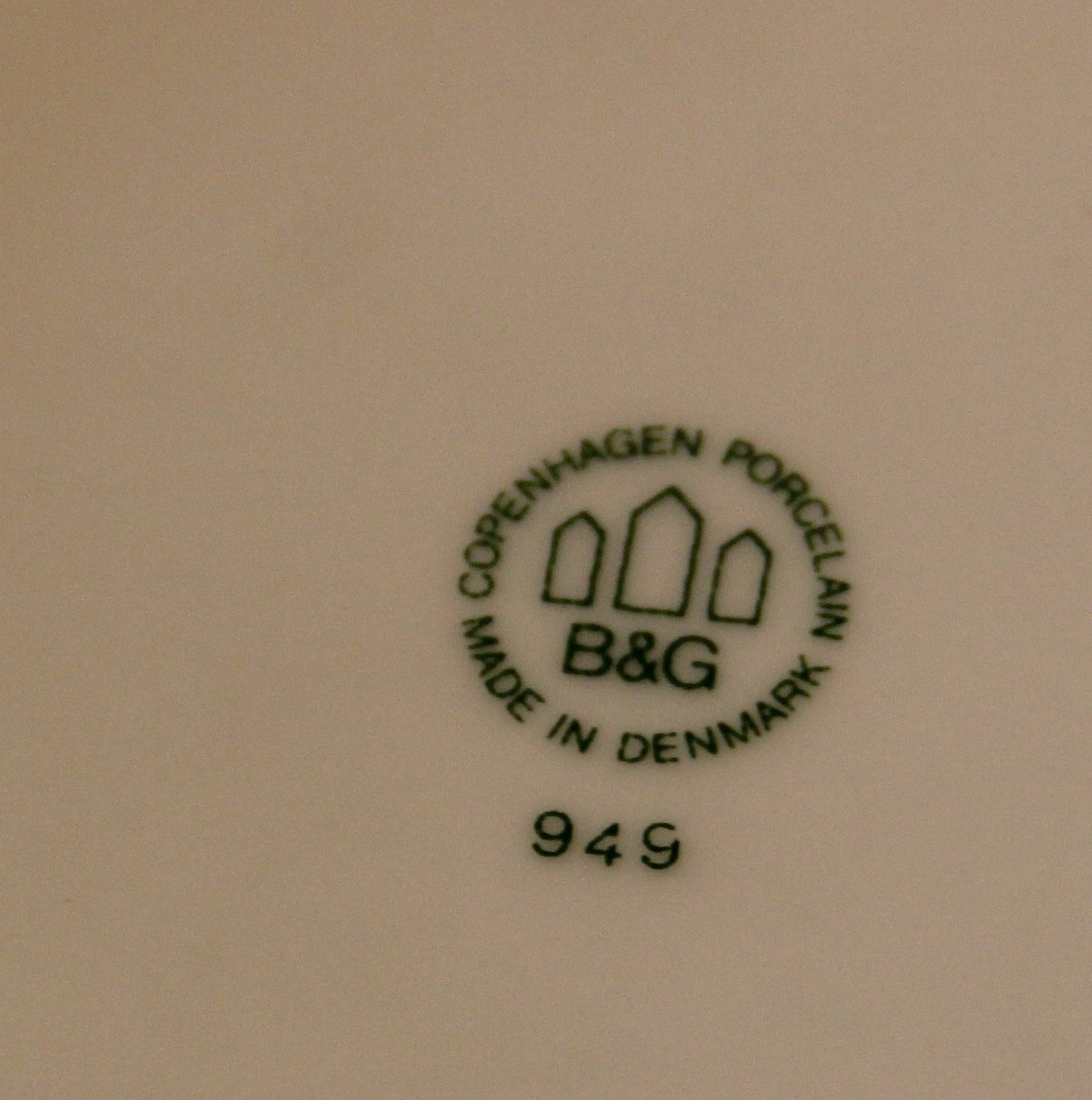 Bing & Grøndahl B&G 949 Handlerskilt på tysk 15 cm Lieferant Ihrer Majestät der Königin von Dänemark
