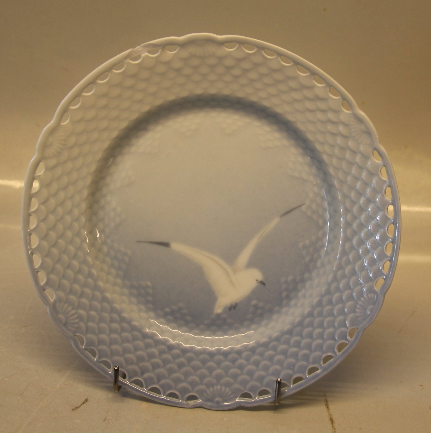 026.5 Tallerken 21,5 cm (326.5) Gennermbrudt kant Bing & Grøndahl Mågestel uden guldkant. I hel og fin stand