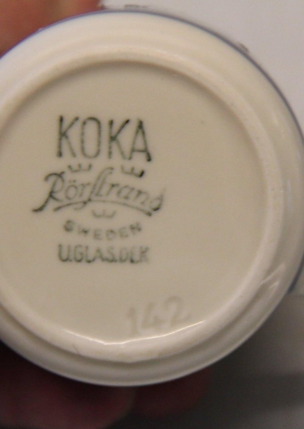 Flødekande 7.5 cm (142) Blå Koka fra Rörstrand i Sverige. Design Hertha Bengtson, 1956.