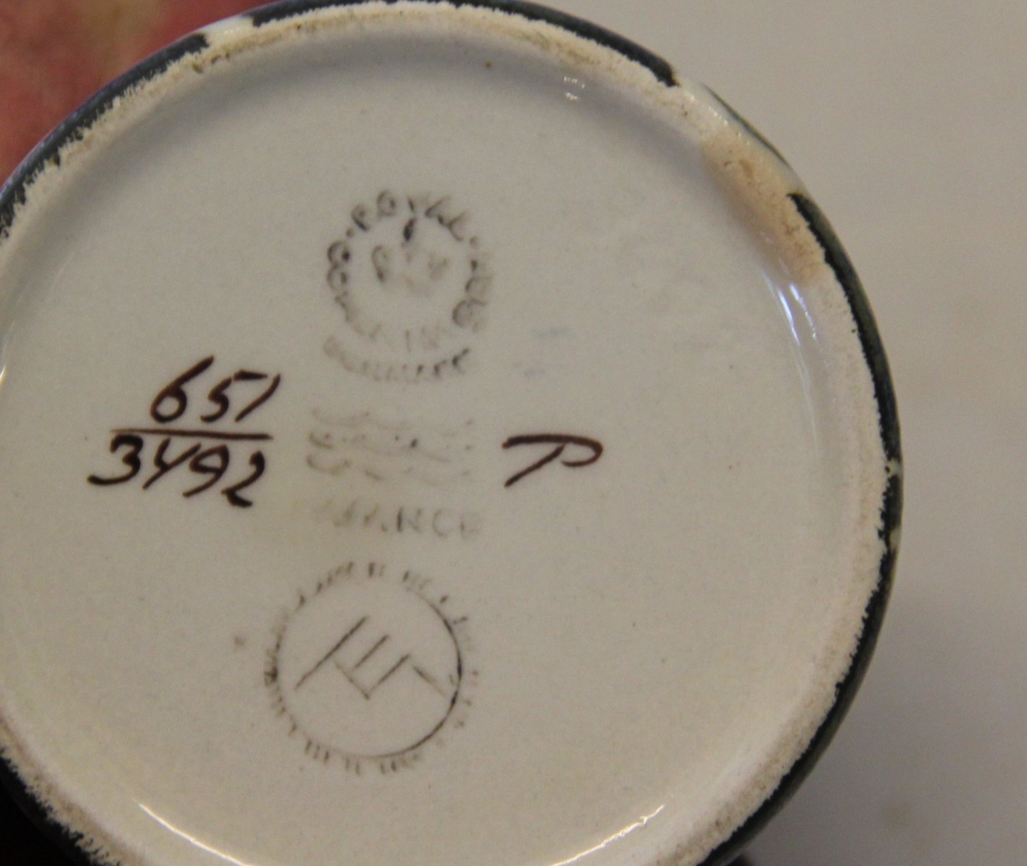Beskrivelse: Royal Copenhagen Aluminia Baca fajance 651-3492 Vase 8 x 7 cm Blue Ellen Malmer 1966, Baca
