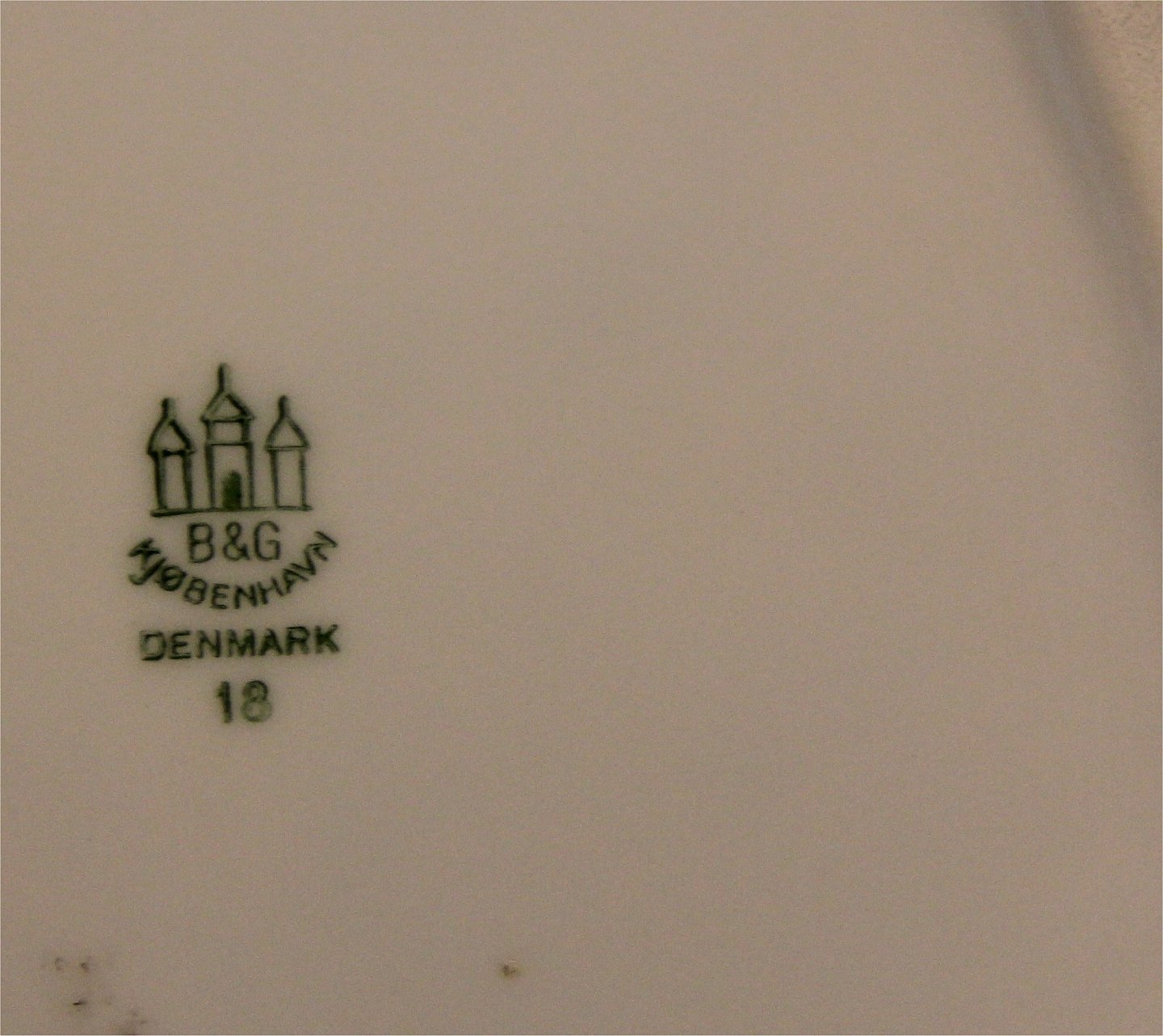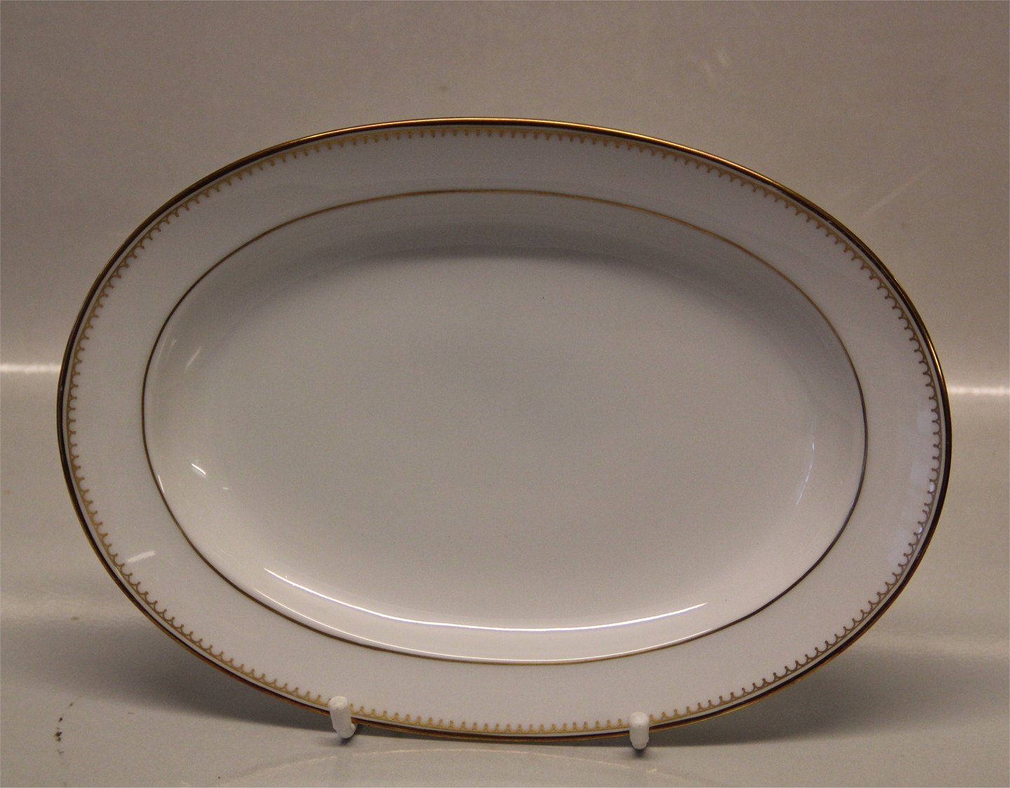 016 Ovalt fad 33,5 cm B&G Menuet: Hvidt porcelæn, takket guldkant, hvid, form 601