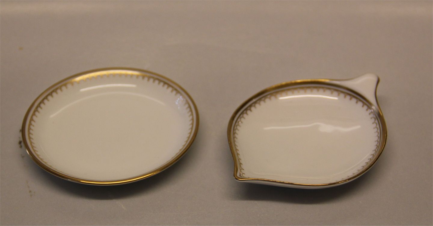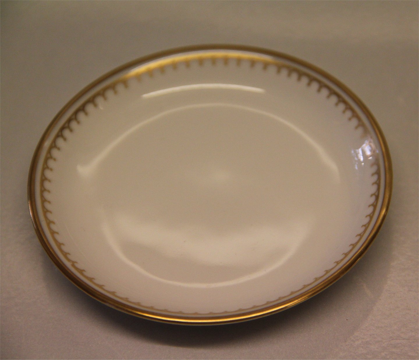 Assietter - kuvertsmør 030 6 200 B&G Menuet: Hvidt porcelæn, takket guldkant, hvid, form 601 Bing & Grøndahl