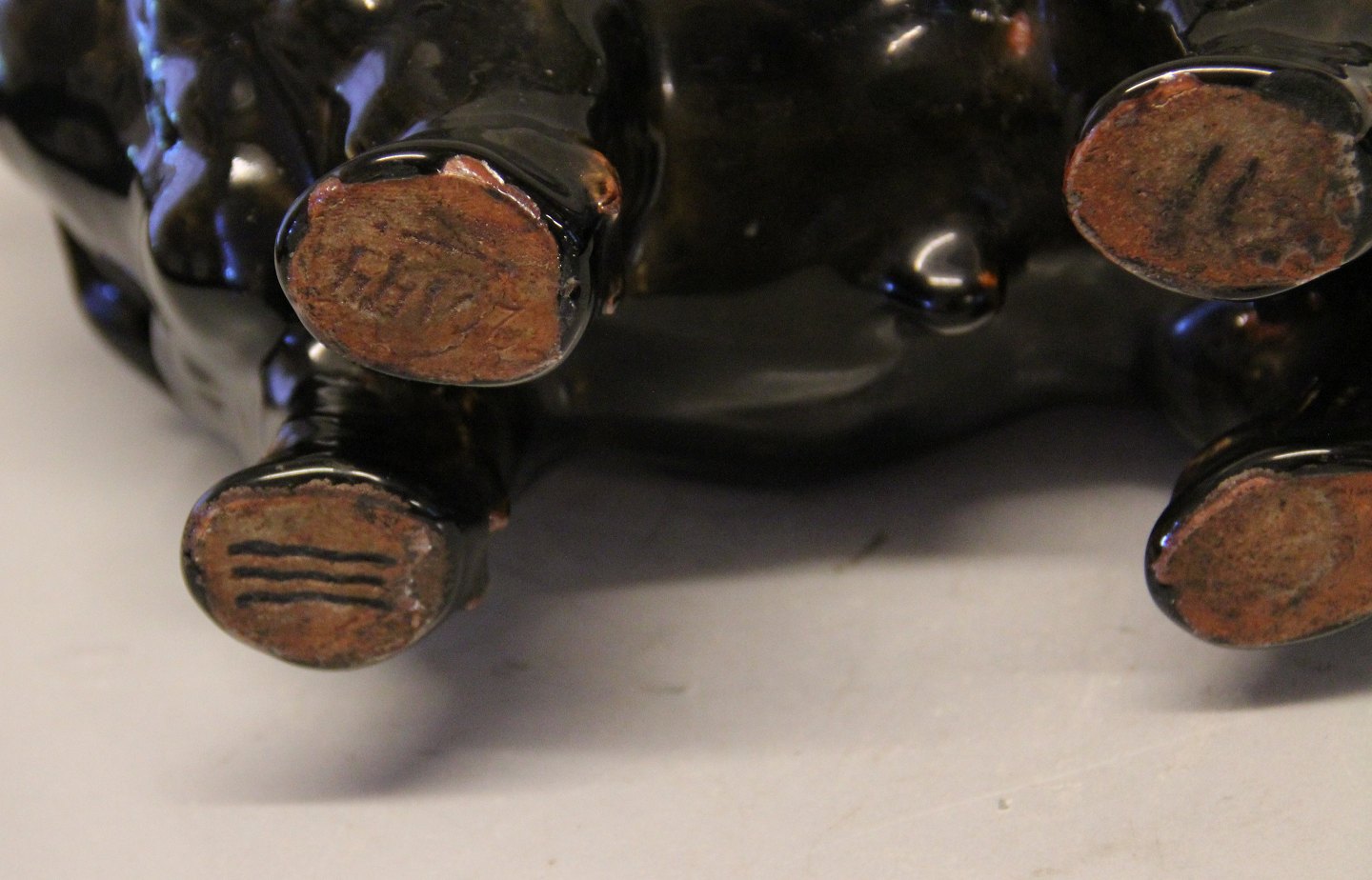 Beskrivelse: Olivin Glasur Royal Copenhagen stentøj 20144 Kgl. Tyr 20 x 31 cm Knud Kyhn august 1927 I fin og hel stand