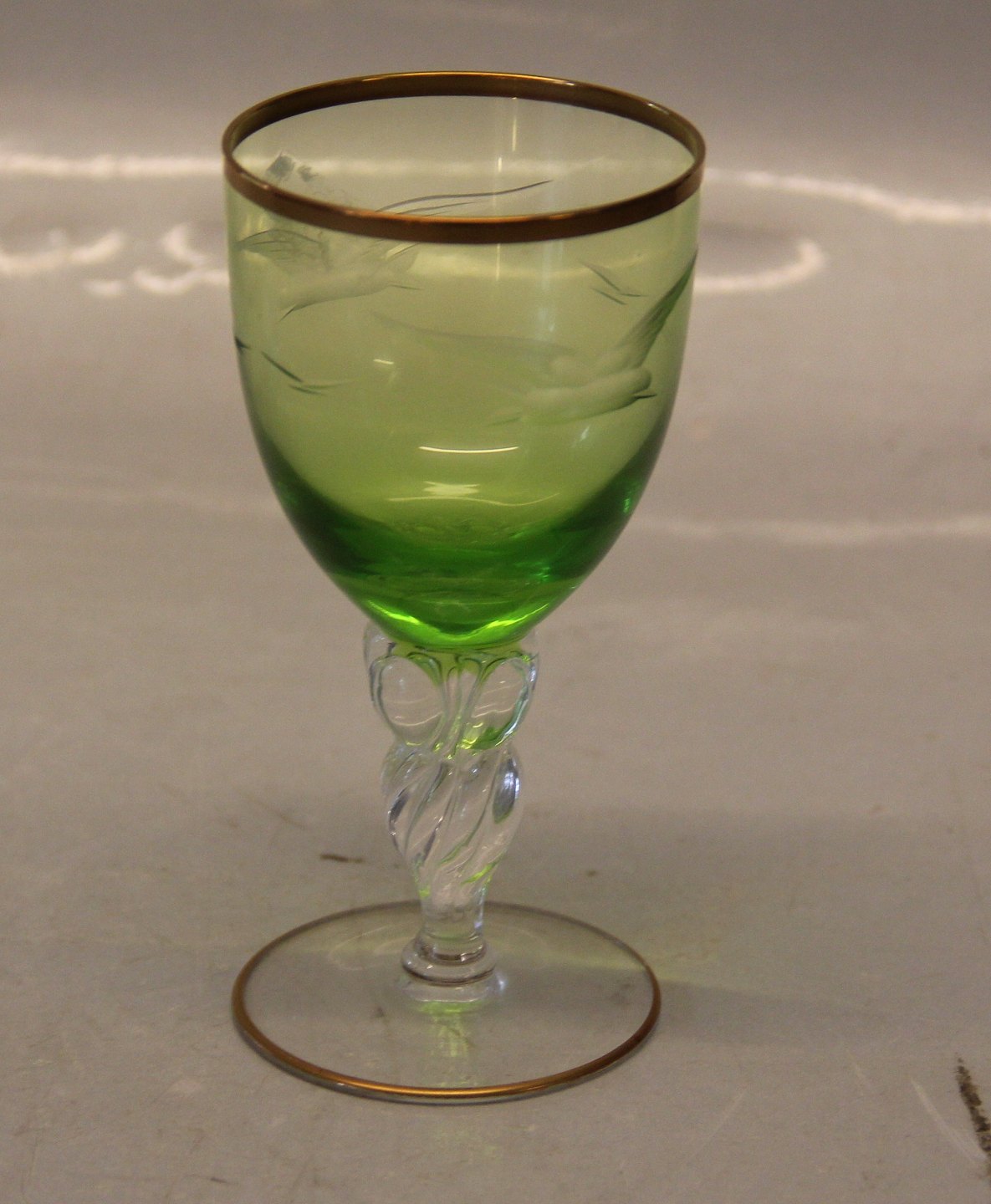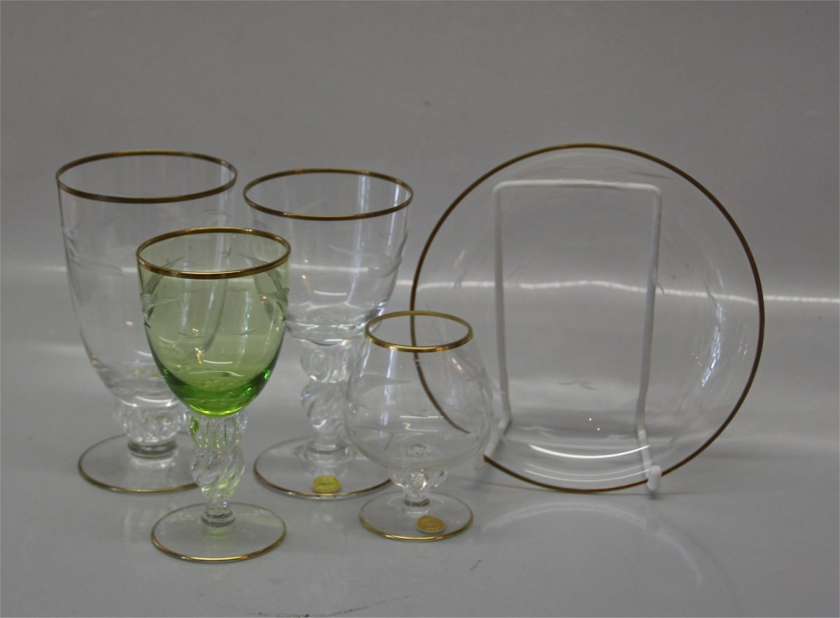 Mågeglas Lyngby glasservicce - drikkeglas med guldkant og slebne måger - slebet glas