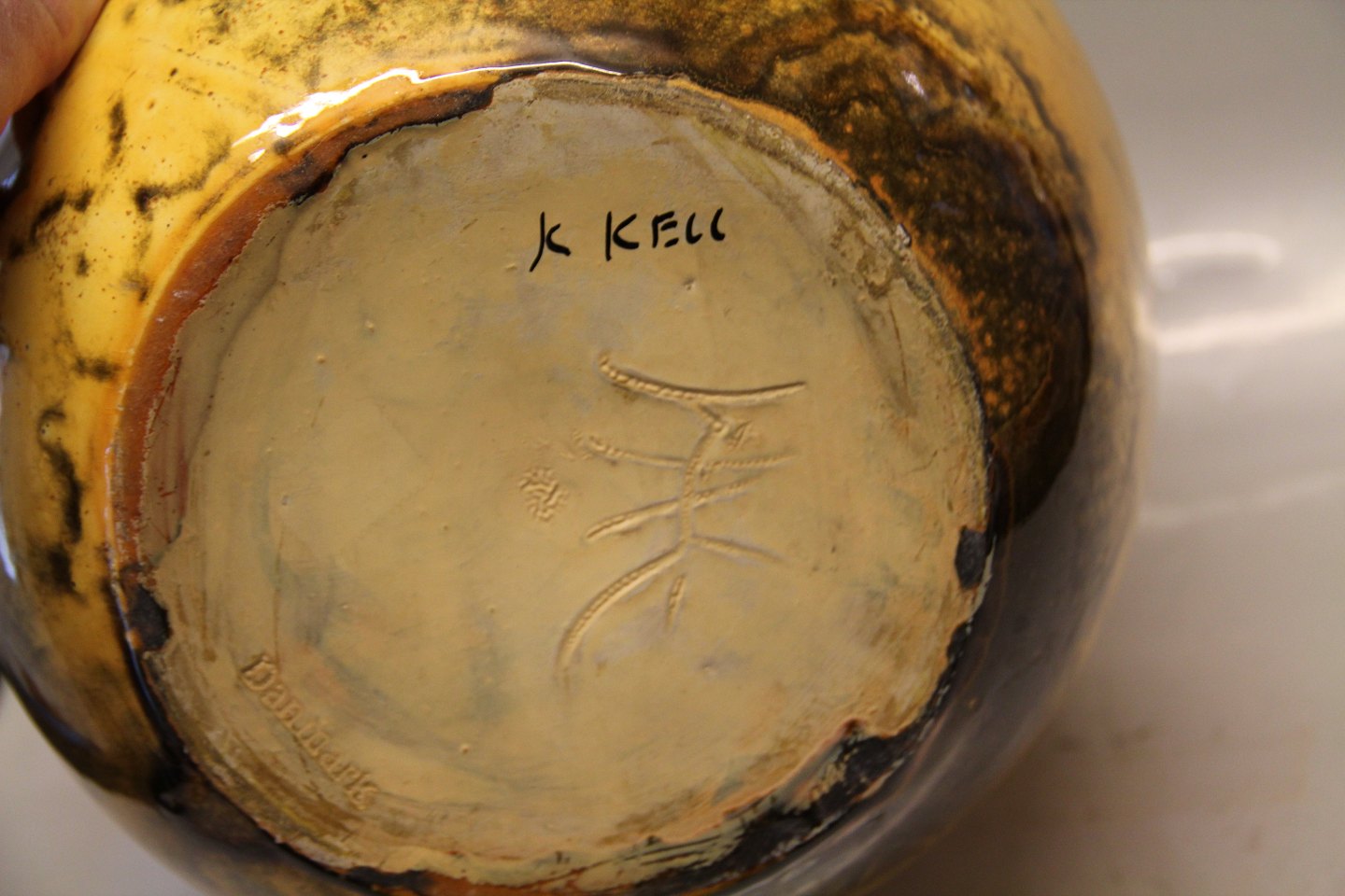 Beskrivelse: Stor Urangul Gulvvase stemplet HAK 33 x 25 cm Svend Hammershøi I fin og hel stand